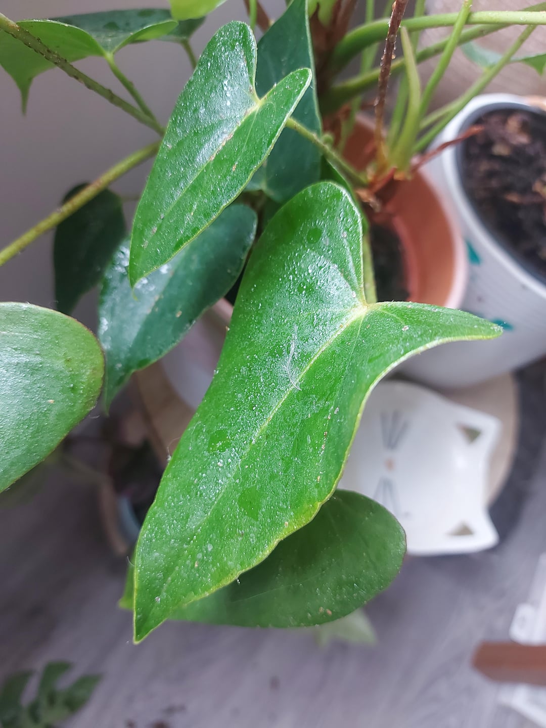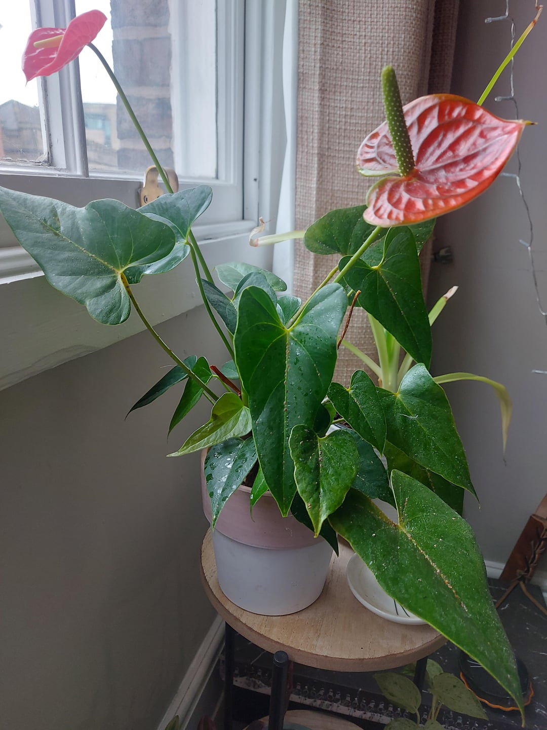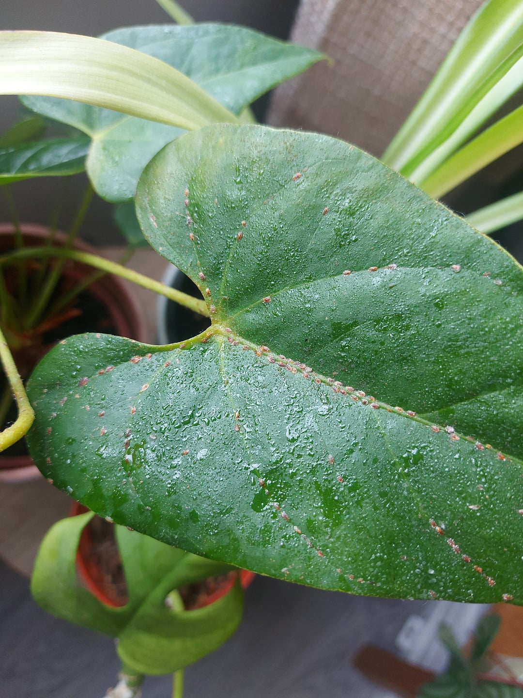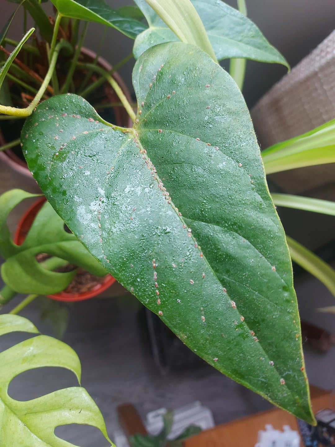 As everyone else said it’s scale, the plant is an anthurium andraeanum