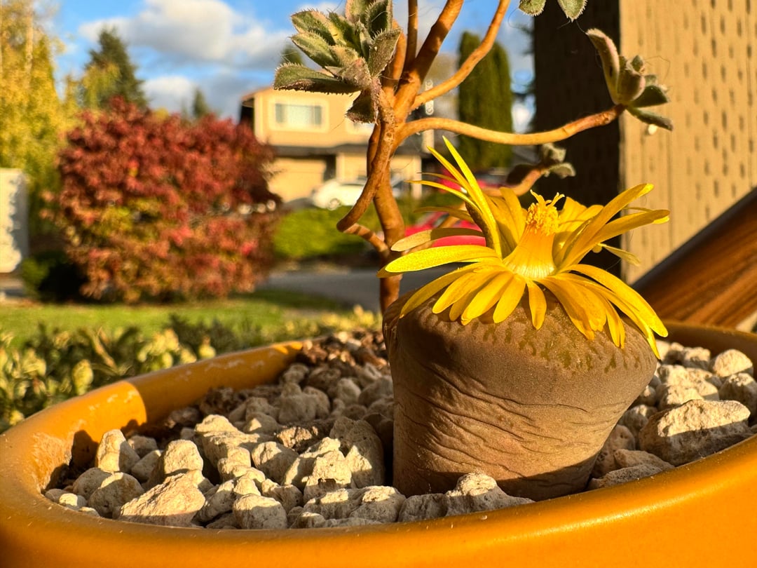 Note on the height, it was originally only about half a cm above the soil line, and then I gave it a deep watering. I think a combination of it getting fatter and taller pushed it up and out, it will be getting adjusted when it goes dormant and the aeonium will be removed then as well.