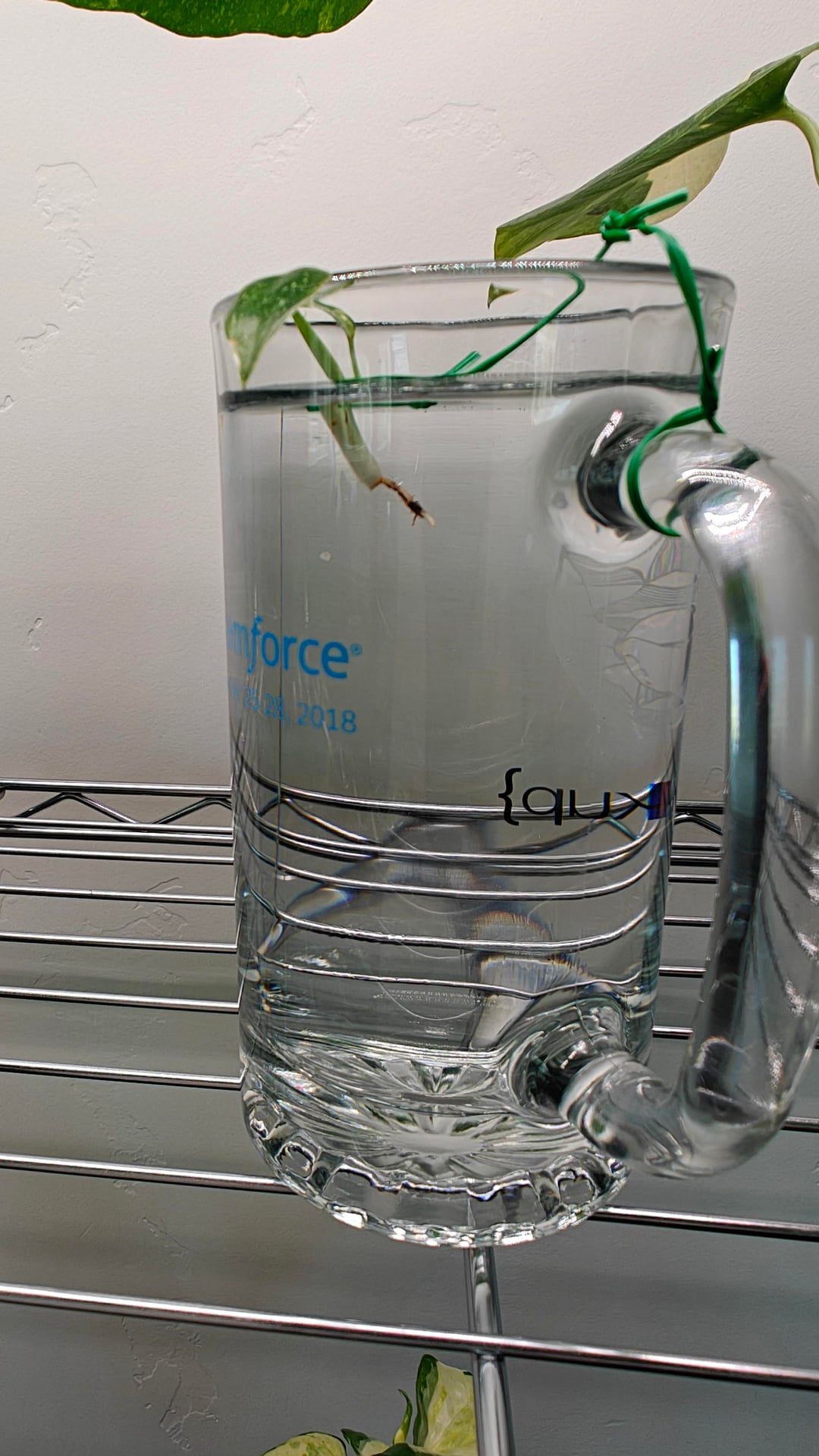 Sure! But charging the water is a fallacy. Don’t change the water but put it into a smaller bottle. It will create it’s own biome in time. Pothos root fairly quickly and once roots have been established you can plant in soil or leave it in water and it will continue to grow.