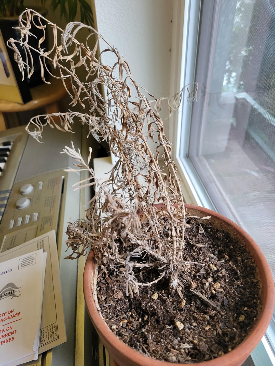 I've had this English lavender plant outside on my balcony and I fear it's a goner. Any suggestions? Can I prune these dead-looking stems or will that likely just make it worse?