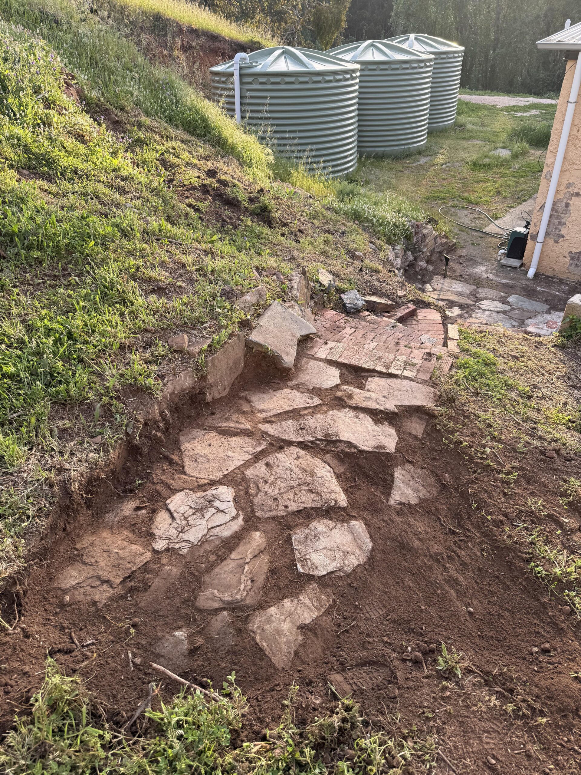We bought an 1867 cottage on a very rundown 30 acres a year and a half ago, and every day I uncover a fun new surprise! Today it was this bluestone path. It seems to have been buried intentionally; who knows why or for how long, but I love stone pathways. Anyway, there is dirt all between the bluestone and that’s super problematic for weeds – what are my options? Can I put mortar on the dirt in the gaps to make the path inhabitable for things that want to grow in the gaps? TIA!