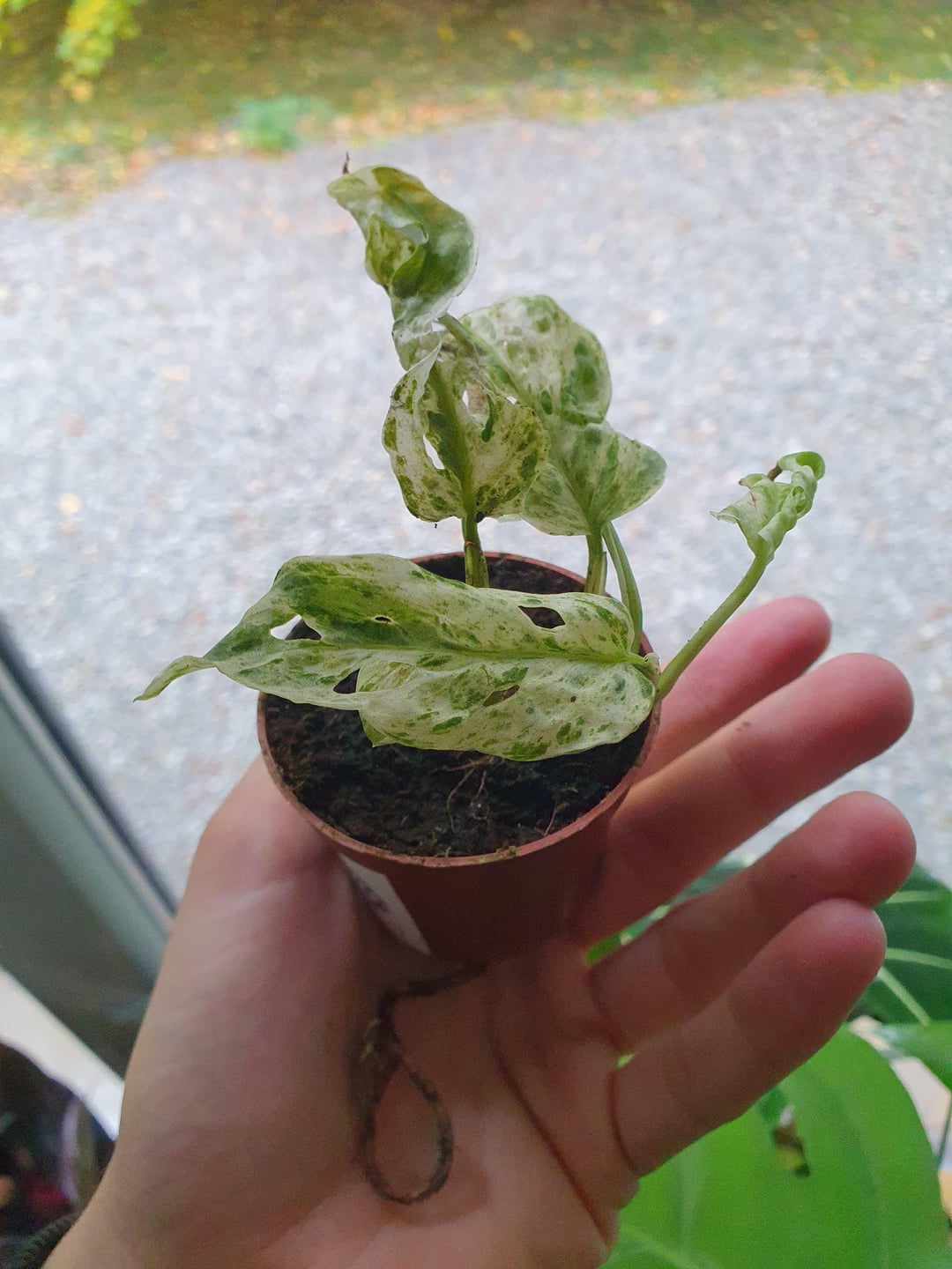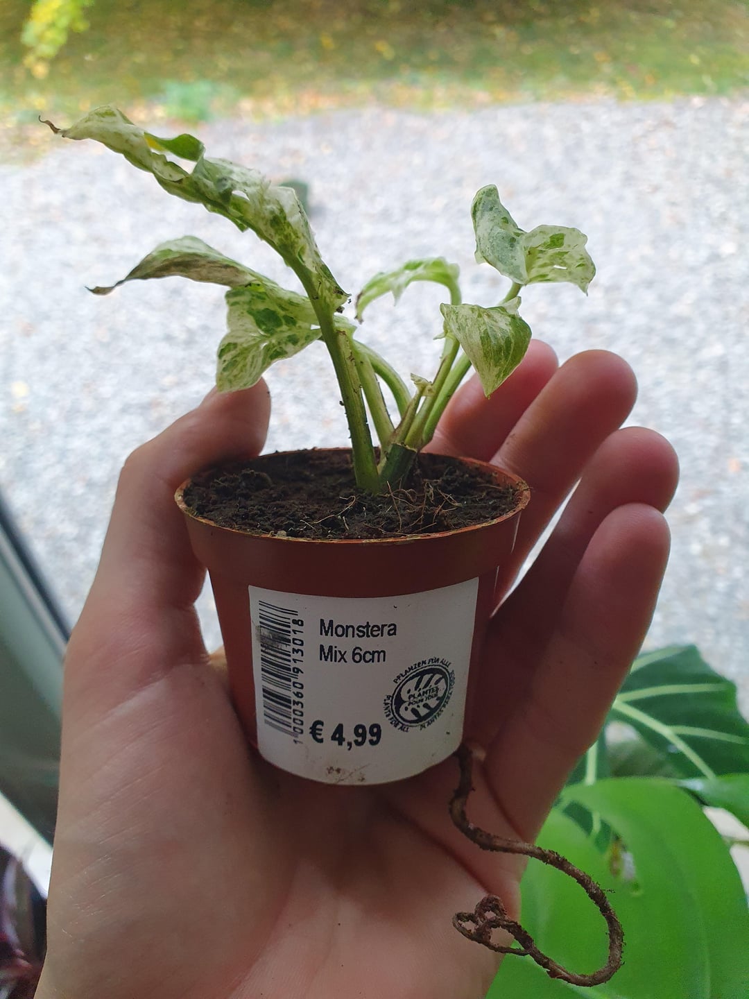 I just found this Monstera in an ephemeral store. The label says "Monstera Mix" as you can see, and I paid it only 5€, but I am wondering if it could not be a "Monstera Adansoni Frozen Freckles"…