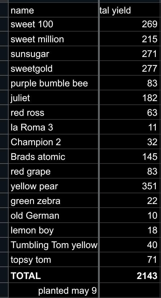 Nice! Any flavor notes/preferences? I’m particularly interested in the sweet 100 vs million & sunsugar vs sweet gold. And how the yellow pear compares to the others since it just pumps out the tomatoes!