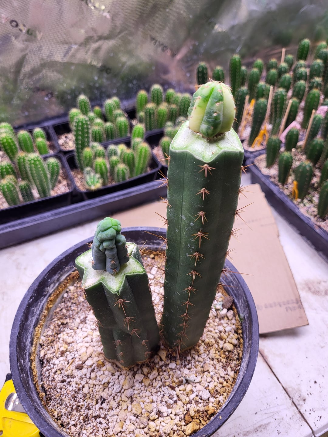 It's amazing how going into the garden can be such a great time when you have cool stuff wonder about. Cool crests, variegated seedlings, and new blue pups have me staring at cac for at least an extra 1.5 hrs a day. Plus, I just pulled a sneaky variegated NFA x Althea hiding in a tray of seedlings (last pic). I'm so pumped about that! What cool stuff are you guys working on?