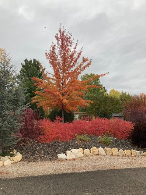 For red oaks research scarlet oak (Quercus coccinea), Northern red oak (Quercus rubra), or Shumard oak (Quercus shumardii). Ask the knowledgeable people at Greenhouse Garden Center about specific varieties of these for the best red color. In shrubs take a look at burning bush (Euonymus alata) varieties such as “Fire Ball Seedless’, ‘Chisam Fire’ or ‘Chicago Fire.’ My Burkwood viburnum, Viburnum x burkwoodii’ is a deep red this year. Unfortunately, I don’t know the variety because it was here when we moved in 37 years ago.