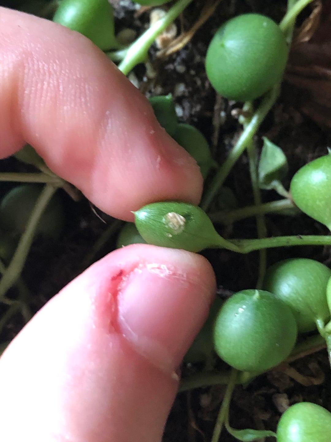 When attempting to remove it with my fingernail, its a little difficult and it takes a chunk of skin off the Pearl as well. This is different from scale, but it resembles it a lot and I have another plant with scale I’m currently treating (quarantined), and I’ve also never dealt with it on SOP before.