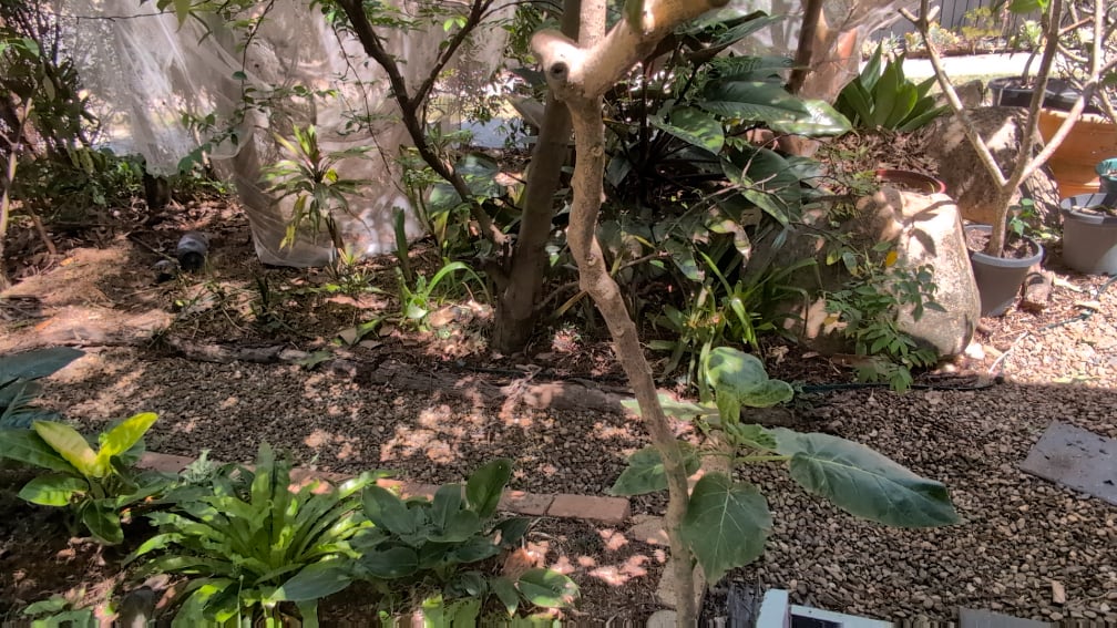 Then a canopy of tall local shade trees over a sub canopy selection of subtropical fruit trees. A few beds featuring shade plants and an artificial pond in the middle. Fish for mosquito control.