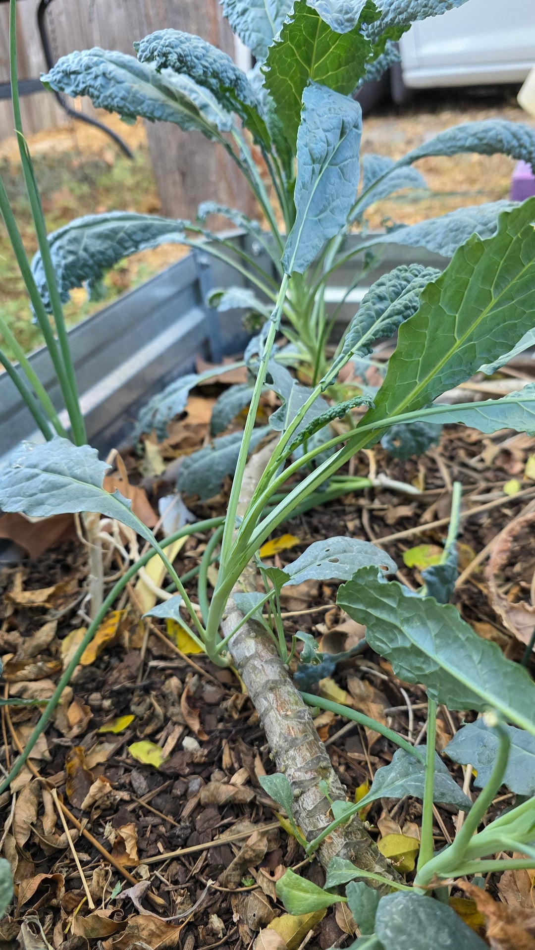 Do you not eat your kale much? You have so much ready to be picked. I’m out there almost every other day, picking the lowest leaves to eat. Mine is doing what yours is doing, which I’ve seen before in Dino kale. It’s ambitious and t’s confused, and it thinks it’s a Brussels sprout and it’s growing lil “cabbages” of kale along the stalk. Just yank ‘em off and eat those, too. If you clip the bolt, you’ll likely get more lil “Brussels.”