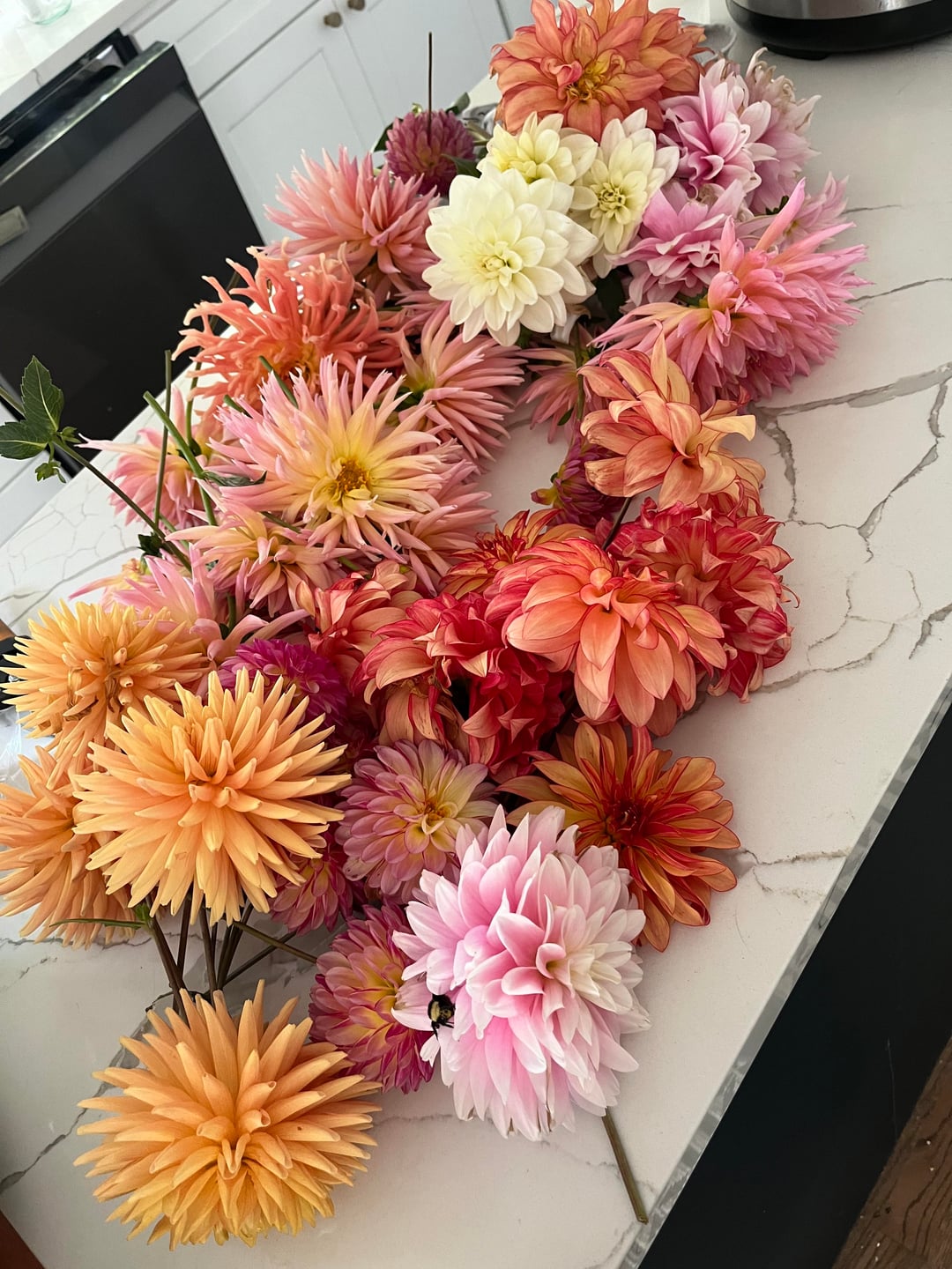 Dahlia harvest on a windy day. This is my second year growing dahlias! Only 1 or two bulbs bloomed for me last year. My dahlias went wild this year. by plantsxcats dahlias 2 Comments No_Host4657 3 days ago Beautiful 😍 SoCalGal2021 3 days ago These are gorgeous! Please let us know the names please. I’ve never grown dahlias but I absolutely love them and would like to try