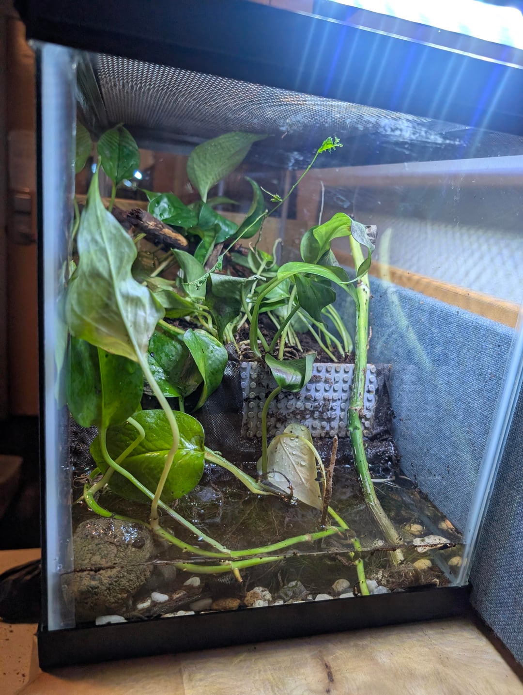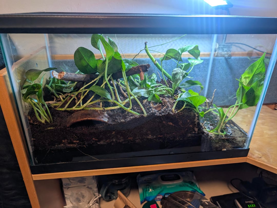 I've had this 10g paludarium for many years where it had pacific chorus frogs, a mantis for a short stint, and then it's been unoccupied for years. I just did a full re-vamp to make it ready for inhabitants (minus the ramp I intend to install). I'm ofc going to leave it to establish properly before stocking.