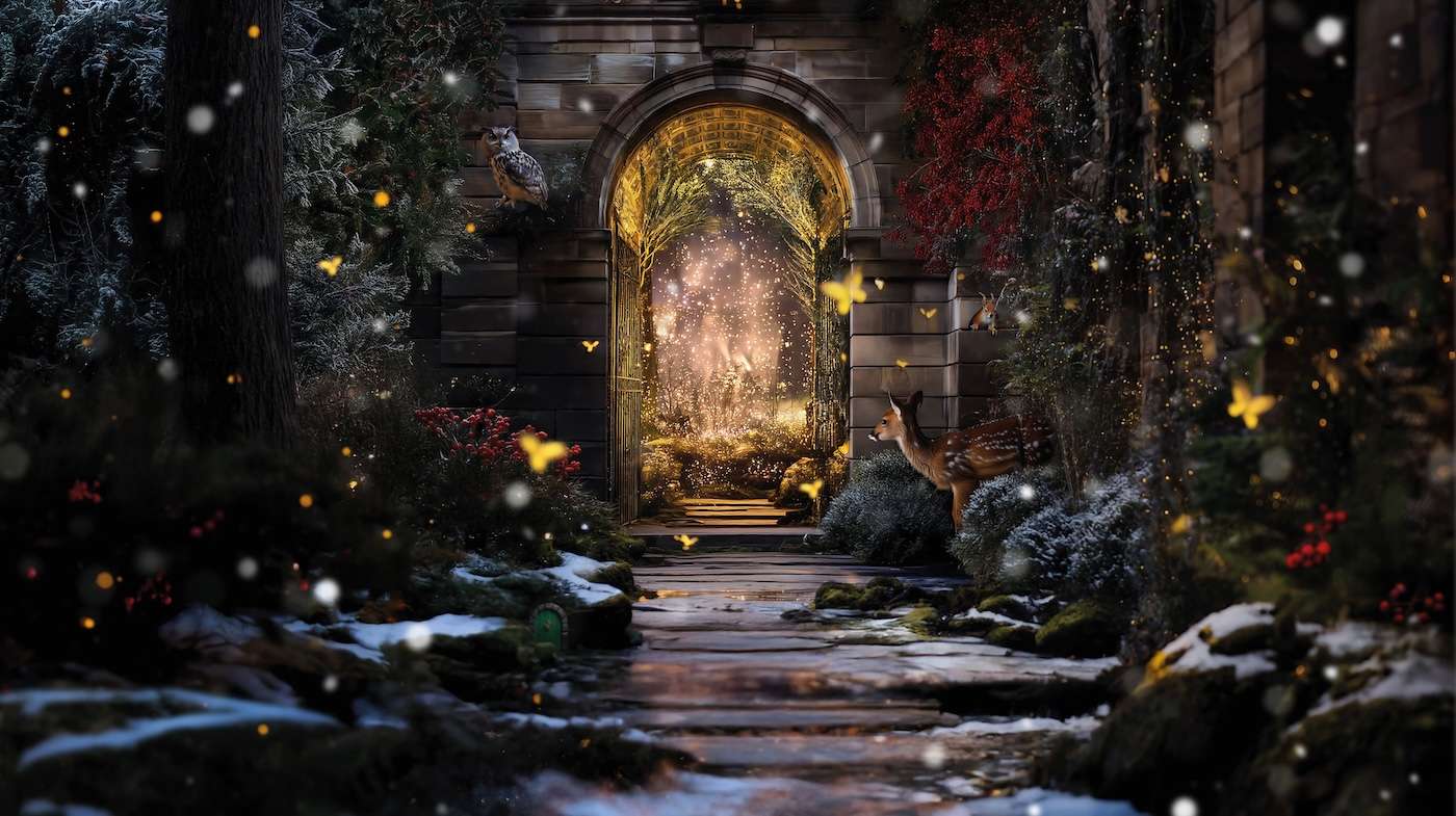 Created in collaboration with acclaimed British artists and animators, The Enchanted Garden brings together traditional craftsmanship and cutting-edge technology. Visitors will step through 20 transformed spaces, each inspired by the natural world — from towering Christmas trees and glistening copper toadstools to a grand cluster of mistletoe and twirling oak leaf archways.