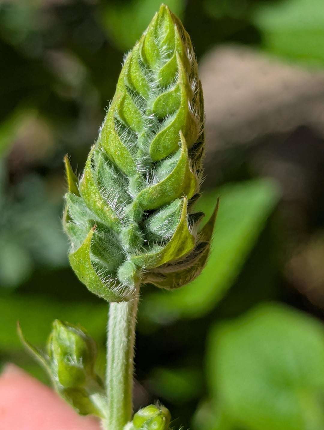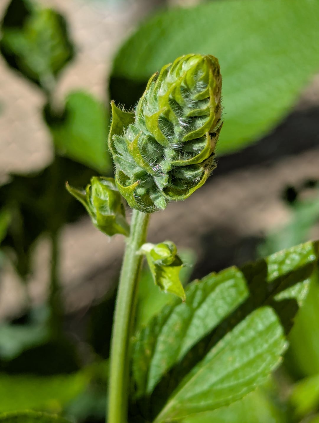 It popped up about a month ago in my yard and I let it grow hoping it was a native. The first couple times I scanned it I got stuff like common three leaf(?) and mint, now I'm getting chia plant or sage. I snipped it down when it was growing too tall and was thinking it was some weirdo plant that never flowers. I checked on it today and it's developed something new so I'm wondering if it's identifiable now? Or do I need to wait for it to bloom