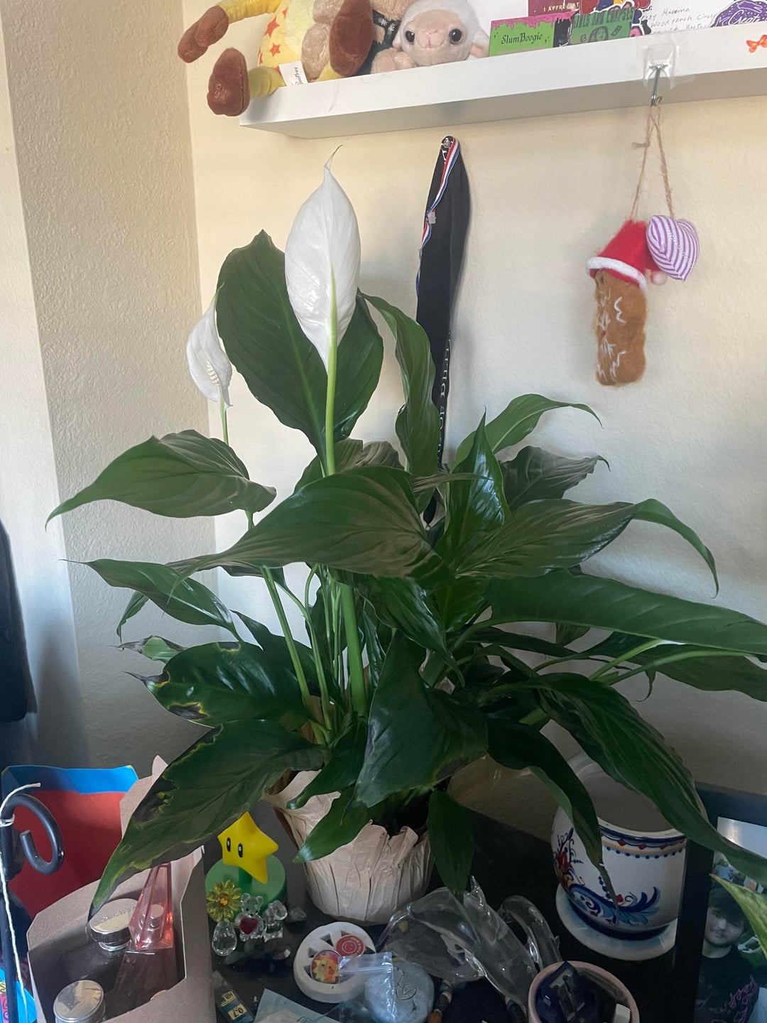 Dark spot usually mean overwatering. Peace Lily’s leaves turn kinda “sad” if it needs water that’s the right moment to water.
