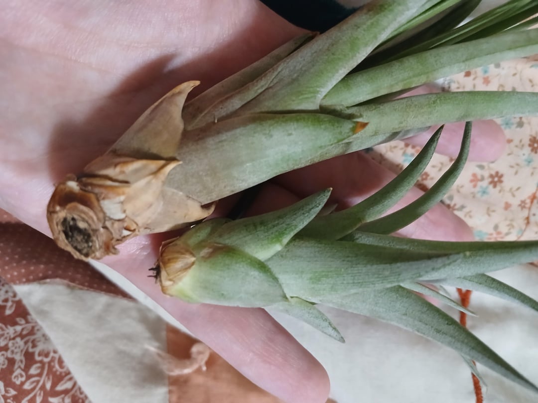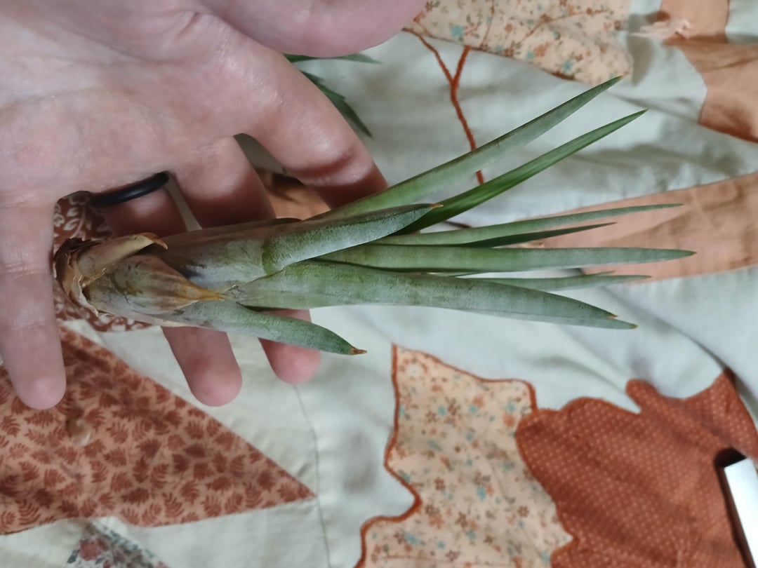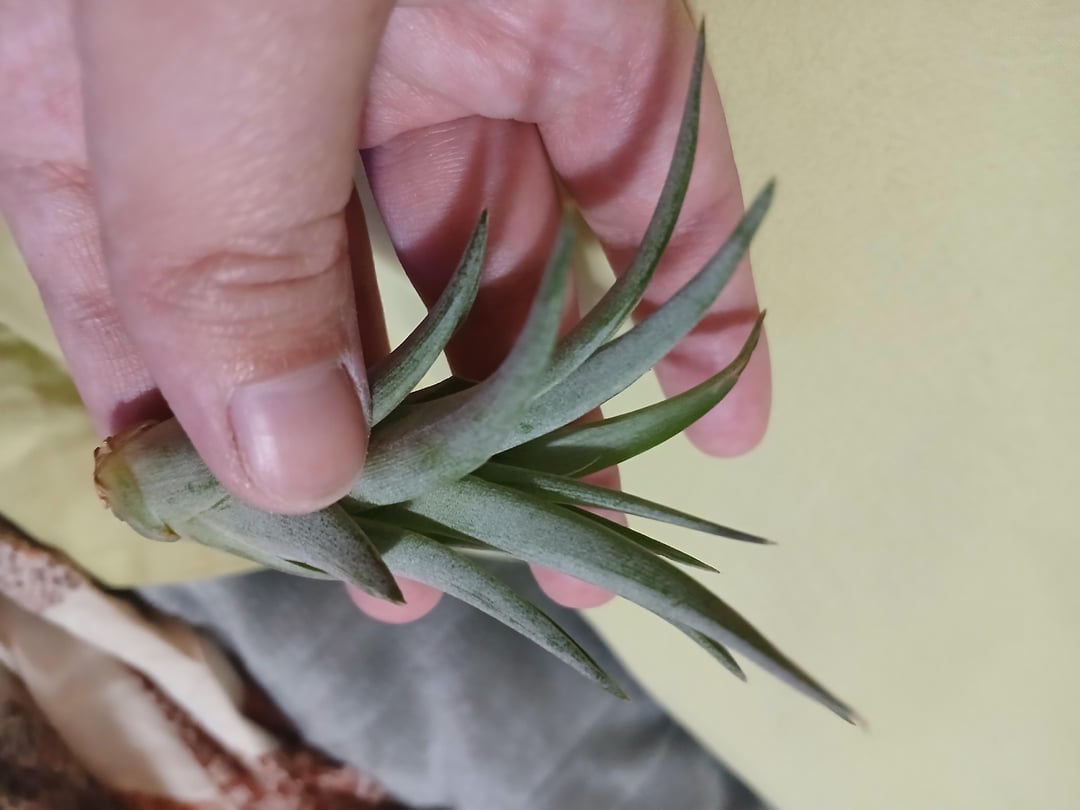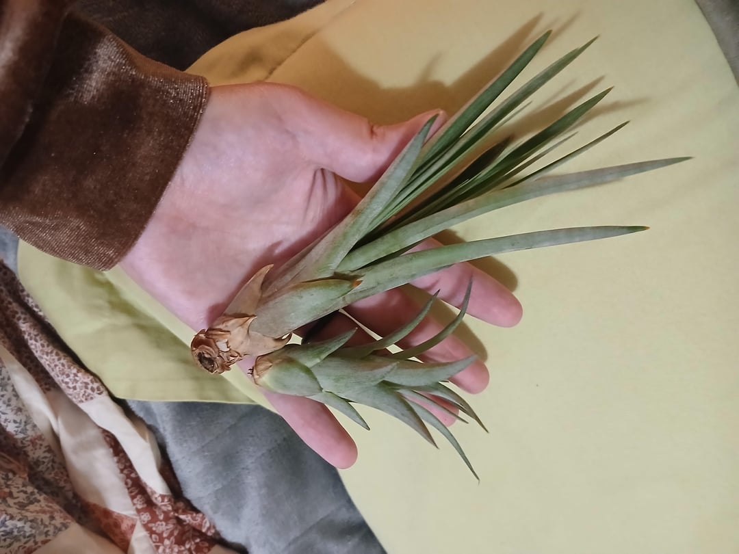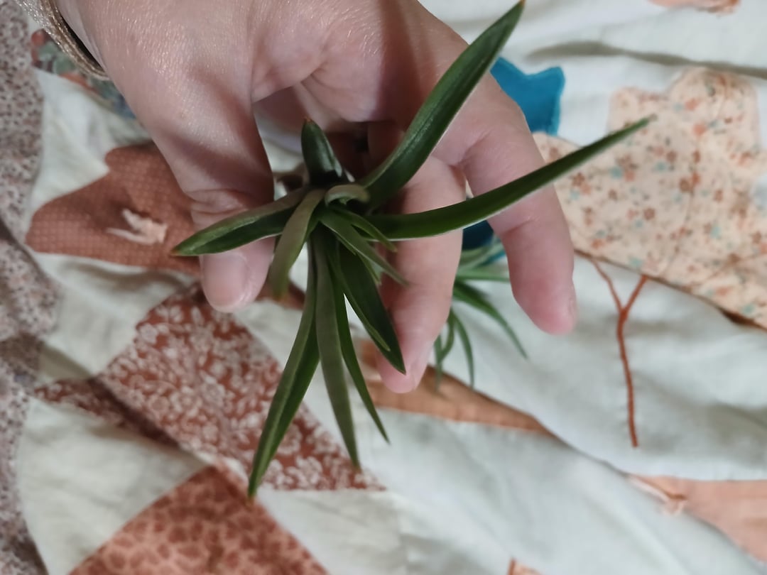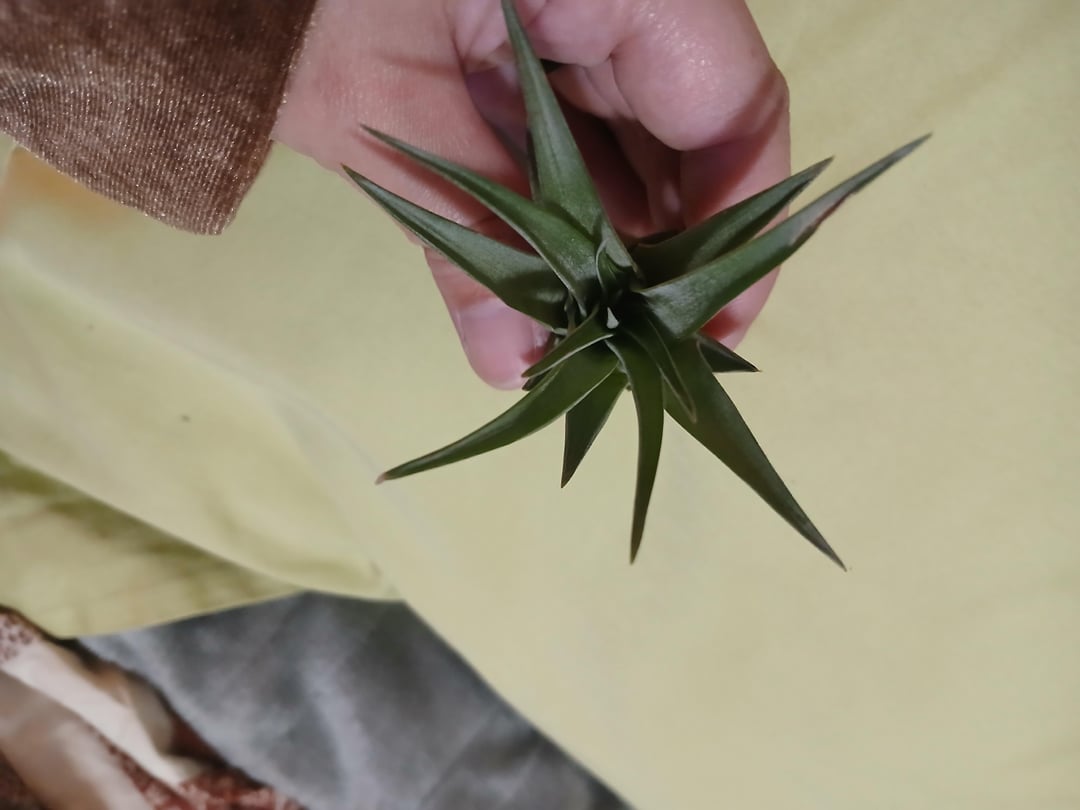 The larger one has very stiff leaves almost roundish as well and verrrry pokey and the smaller ones has much softer leaves and very flexible versus the other with being not flexible at all