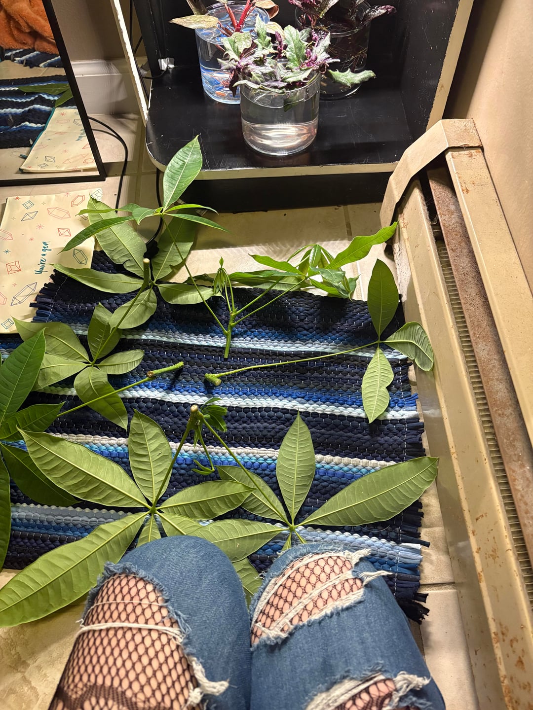 So first time propagating this beauty, not sure though if Iām doing it right. I have these cuttings that have been in water for two weeks now, maybe a bit more, and nothing has happened other than growing these weird wart-like things in its stem š³ soooooo. Not sure if I messed up or not, so I re-cut and didnāt use any stem, just cut off right where the little stem that starts at the leaf and connects to the main stem. So it looks like āIā instead of āT,ā you know?ā¦.basically throw all the knowledge you guys know about propagating money trees right at me, please! Annnnndā¦..GO! š¤