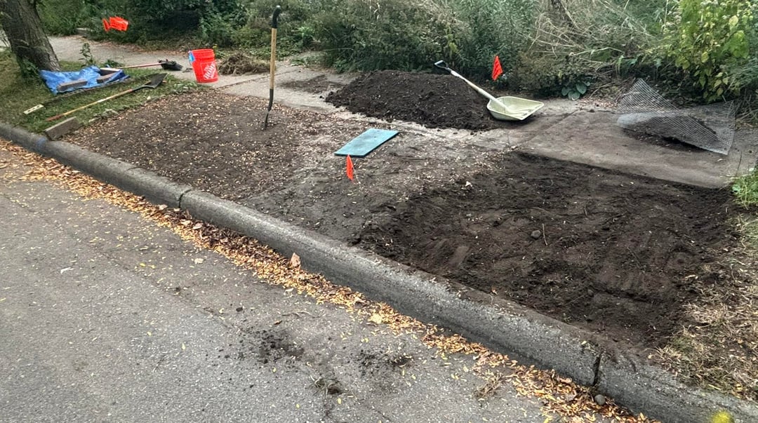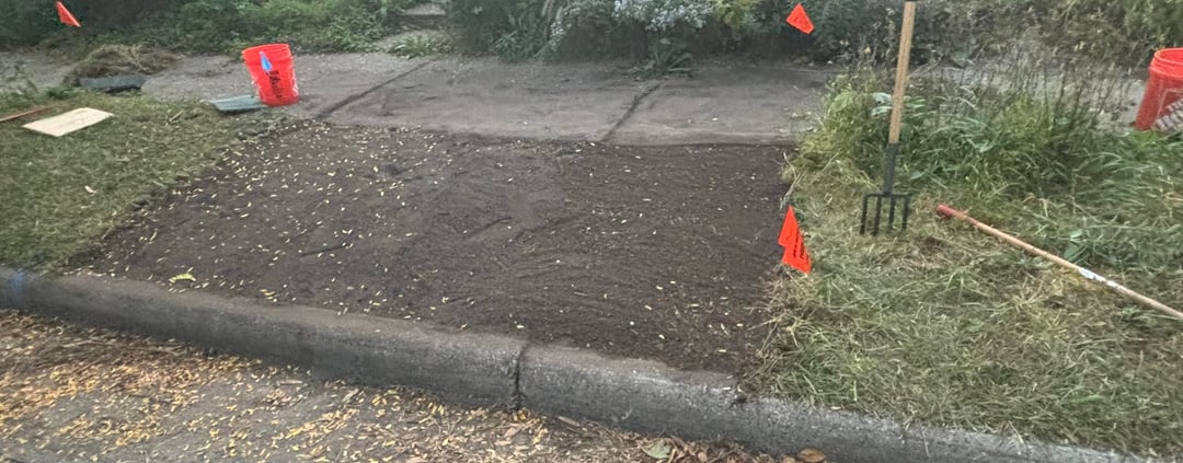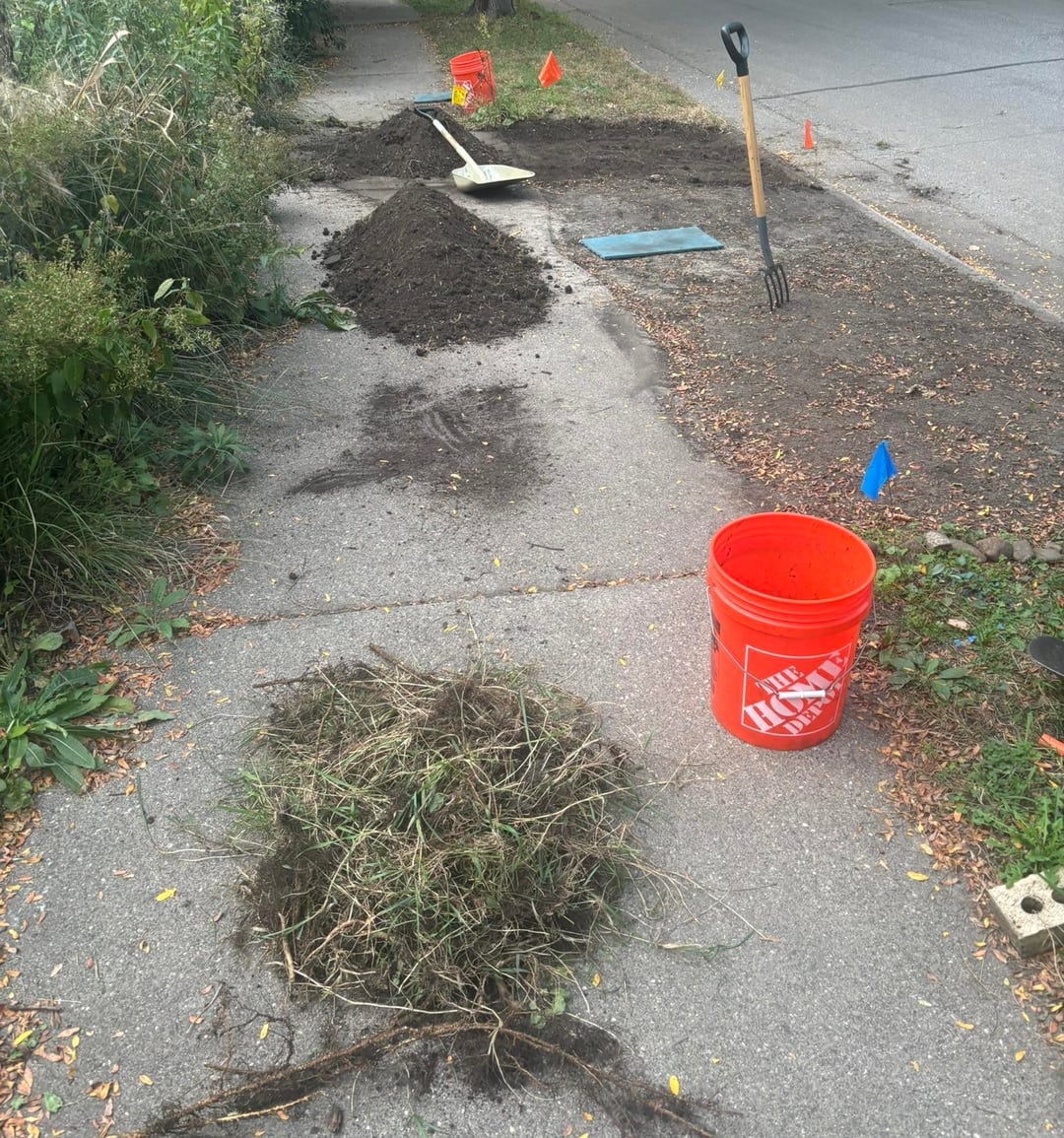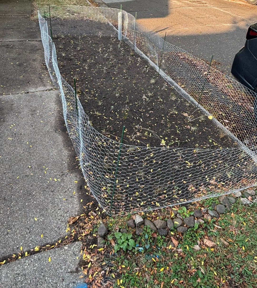 We finally finished our boulevard site prep & planting last week! It went really well, but it took a shit ton of work lol (about 10 hours of site prep and 6 hours of planting with a drill & auger). We didn't have a ton of time for the site prep, so we opted for our tried and true garden fork + sift out all the plant material method (using 1/2" hardware cloth as a sifter). This has worked really well in the past, but it takes a lot of work. In the end we got ~190 plugs in the ground!