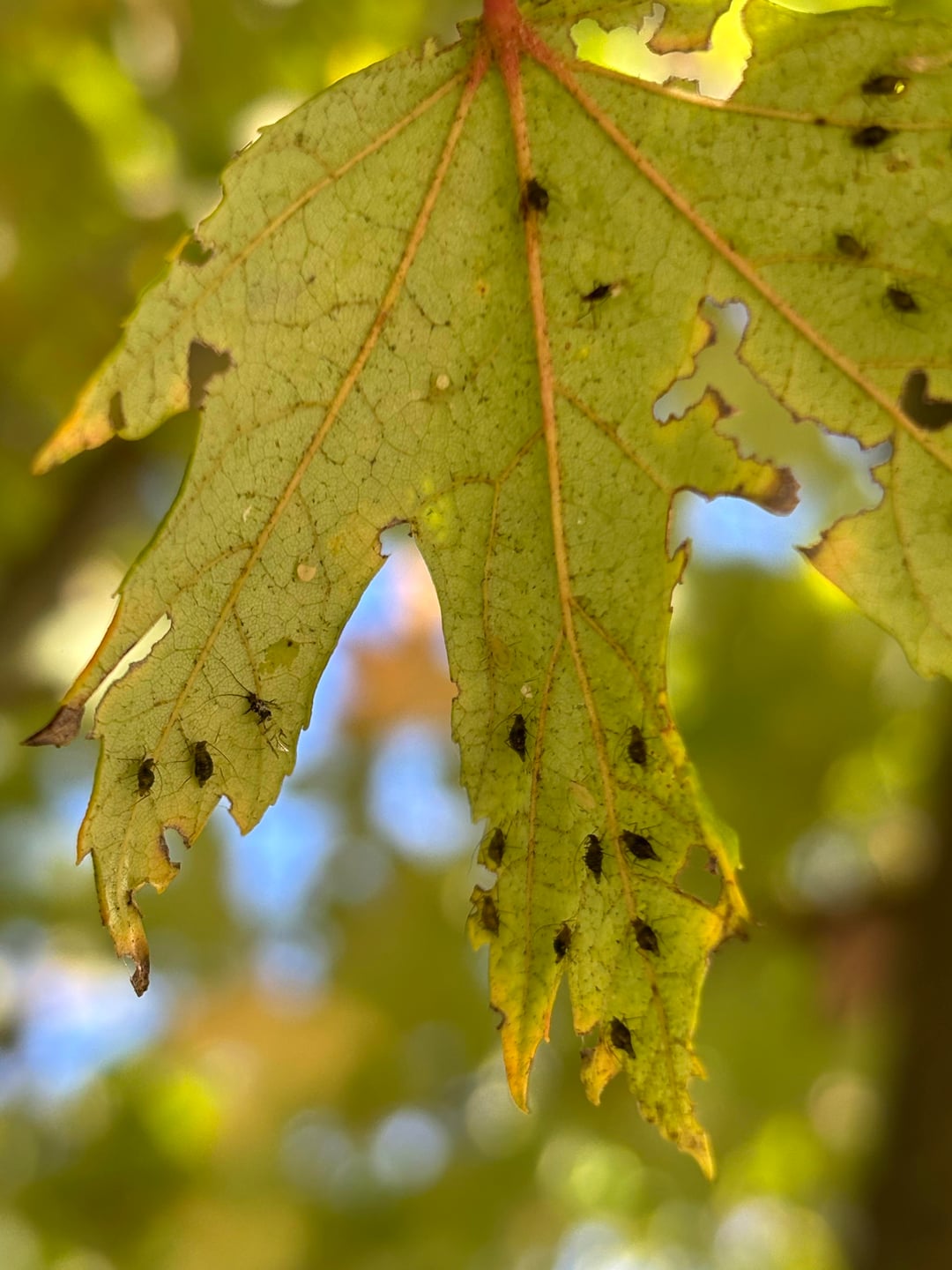 retardborist 3 weeks ago Aphids. Assuming you’re in the northern hemisphere I wouldn’t worry about it, they’ll drop their leaves soon anyways