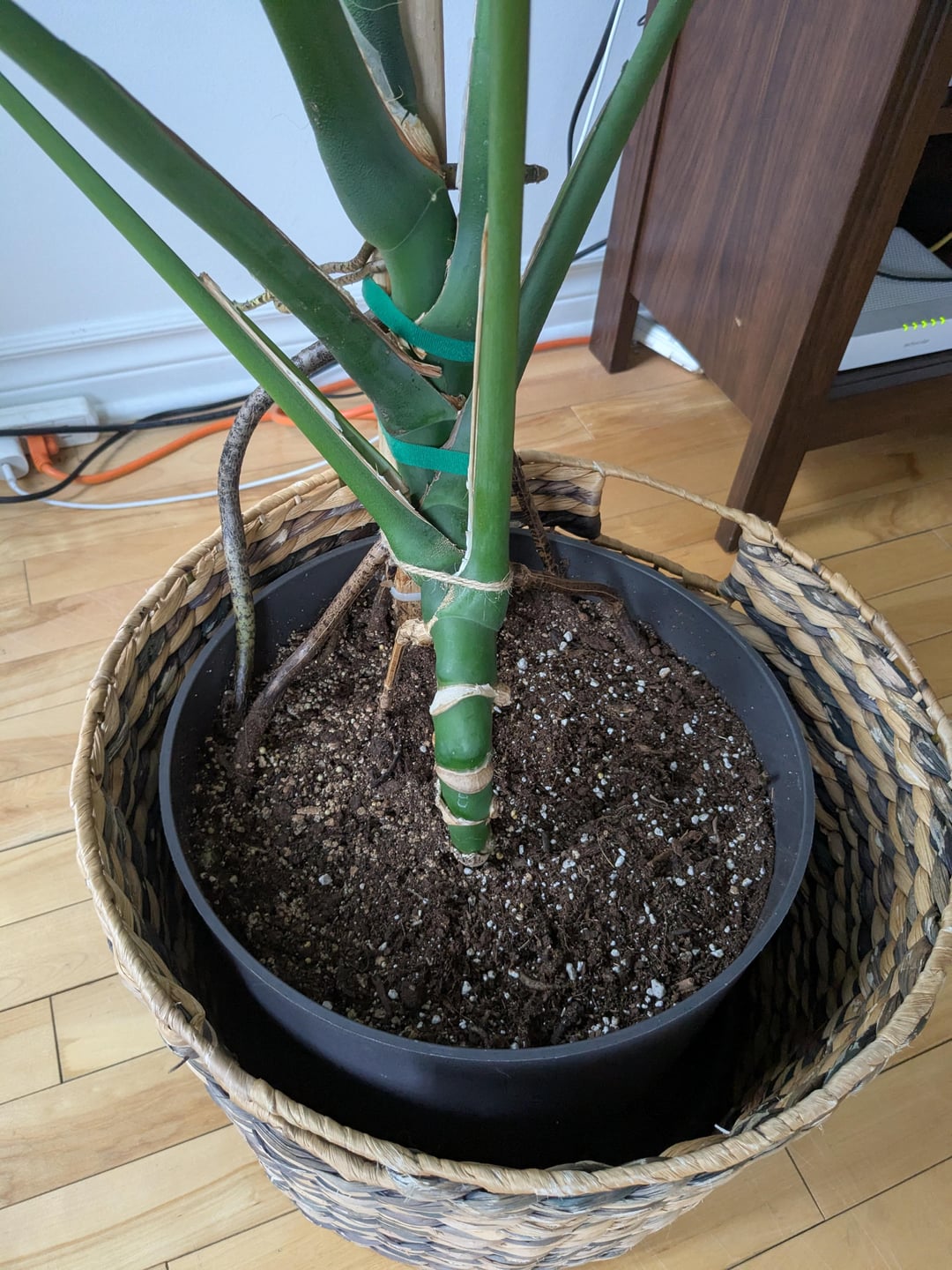 Unrelated question. Will the skinny stem at the base of a monstera ever thicken? Can it become not strong enough to support the plant?