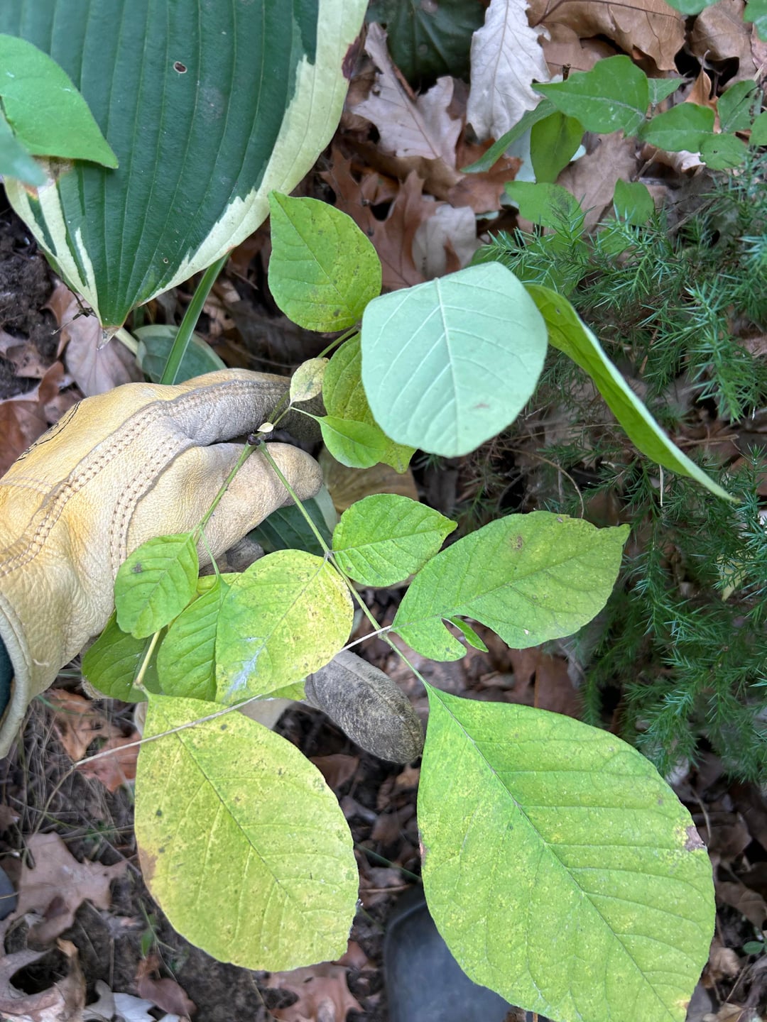 Pictures are of a small patch of land down by my boyfriend and I’s pond, some invasive plants and some cool natives I found. We have about 1 and 1/2 acres of woodland to restore so it’s been slow work but fun. Today I removed about 30 Amur honeysuckle, 2 Chinese wisteria, and an absolute mess of winter creeper. My boyfriend is out there right now pulling some larger autumn olives out! Feels really good to have a small corner cleaned out of this woodland, and I can’t wait for more natives to fill in naturally! I got to see some cool plants I didn’t know were growing there too. I originally came out to clear the hostas (keeping a couple and the rest are going to happy neighbors, MIL and SIL) and got caught up in removing Amur which led to the finding of the Chinese Wisteria. Man let me tell you I GASPED. Didn’t think the previous owners had planted anything other than hostas down there…. Well they also planted winter creeper. It’s been fun. How do I know it was planted and not “wind blew it in” or some shit?Because I’ve already removed 2 burning bushes, horseradish (planted IN the lawn), white mulberry, periwinkle, and rose of Sharon. Plus they were each not placed far from a tree and directly behind it from the path.