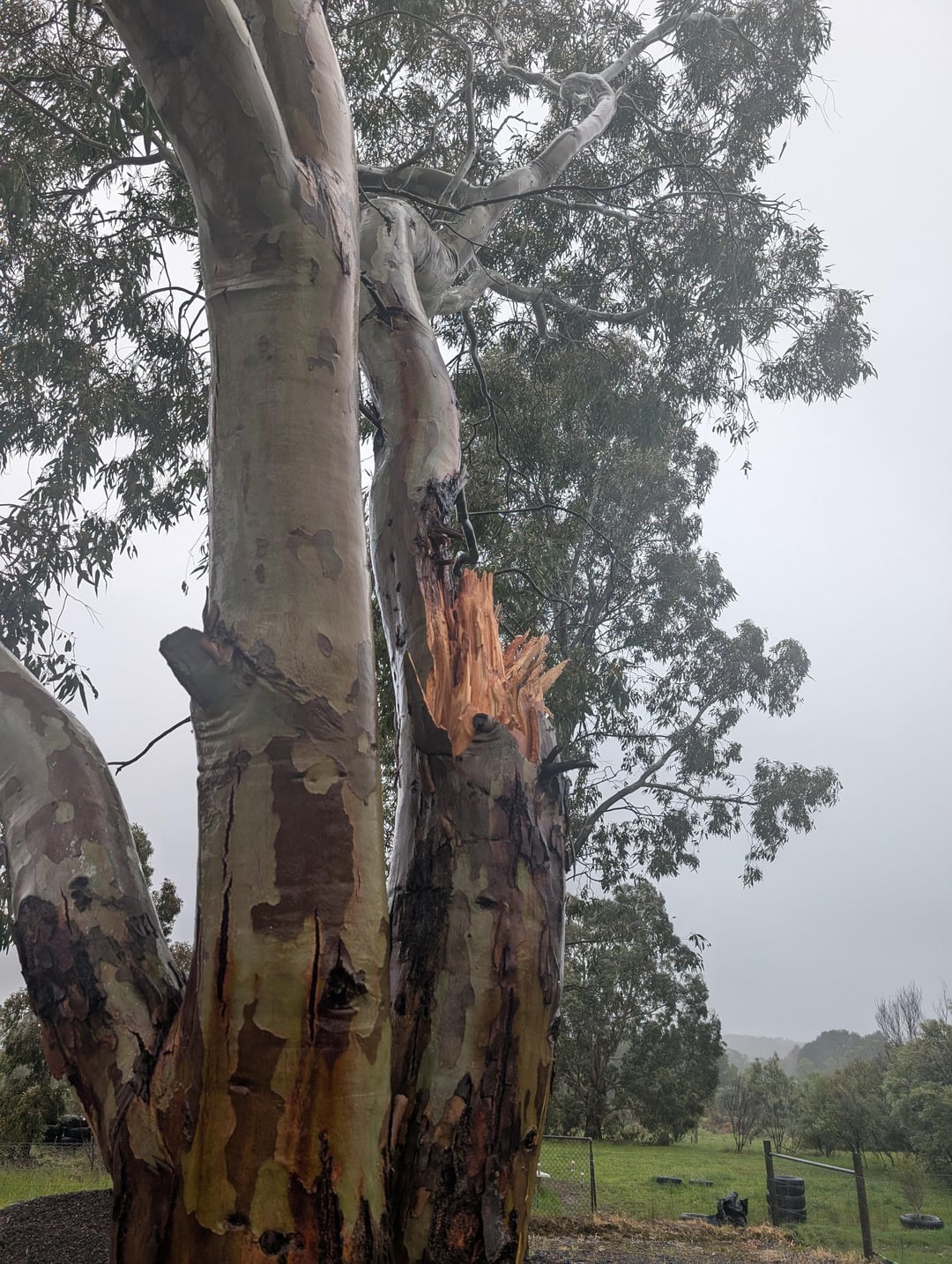 Damaging winds took this branch out, is there left hand branch at the break, done for? Any hope? I assume this whole right trunk will need to be trimmed back down? by vicmsme #arboricultureArborists Comments are closed.