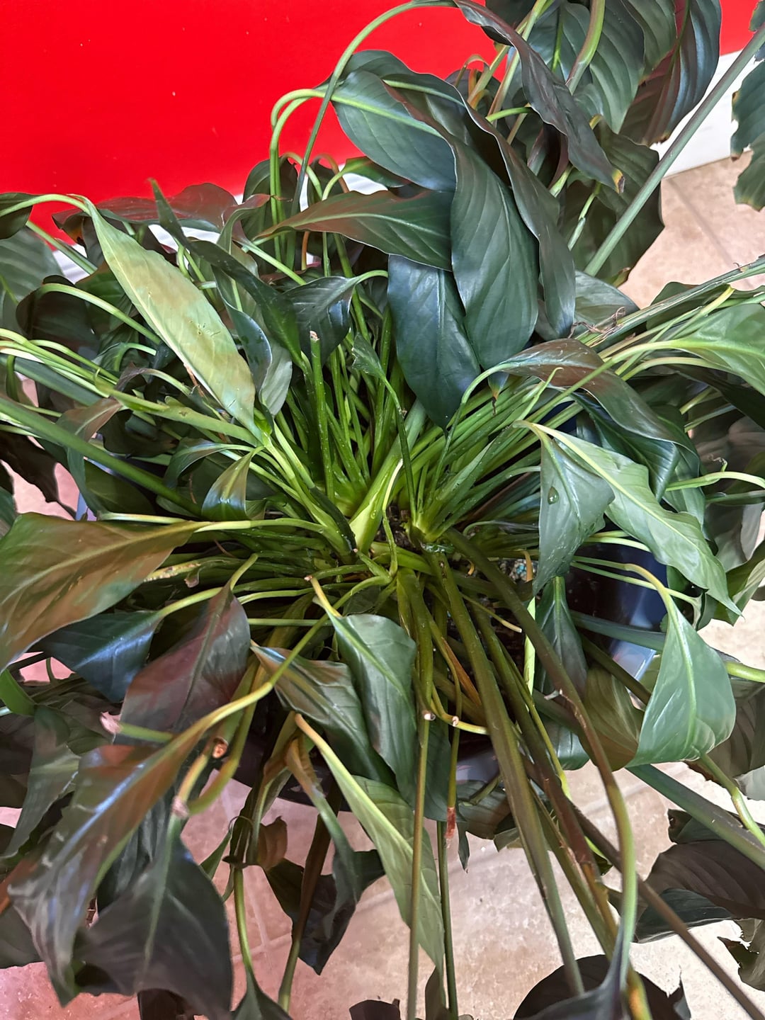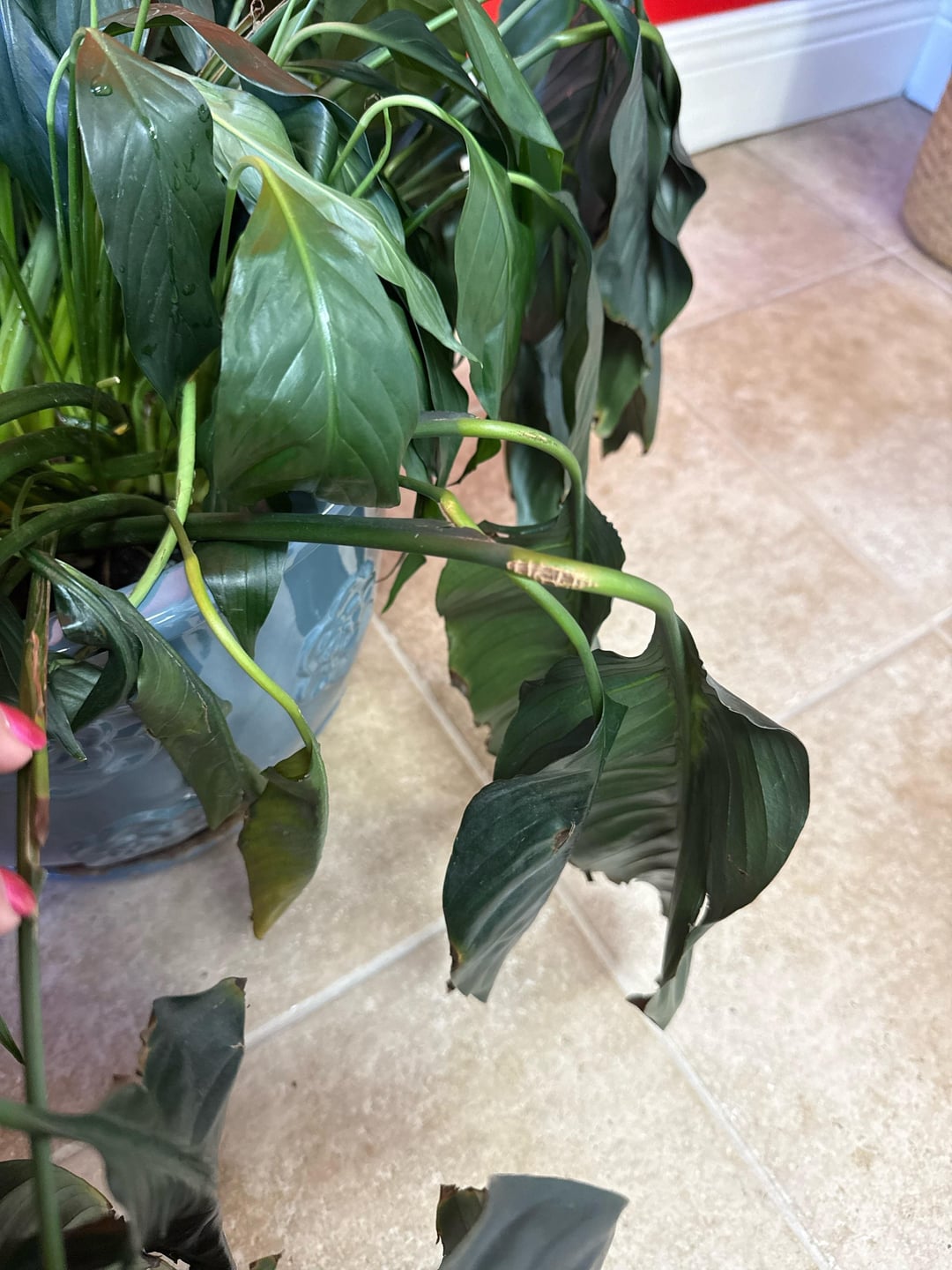 Put Gretchen in the sink or a bucket and let her sit in a bath for a bit. It’s the best way to water peace lilies. Don’t water a little bit here and a little bit there. When she starts to droop give her another soak.