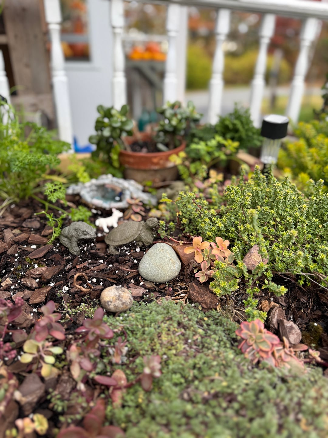 I work at a nursery so sometimes I bring home a few of this and that. A few of the evergreens are doing really well, and they give me so much happiness. A few years back I dug up some burning bush on the side of the road… that’s coming along nicely. I also put a lot of succulents and small ornamentals in my herb boxes so they become more like miniature scapes. Just a beginner in the world of miniature and wanted to share 😊