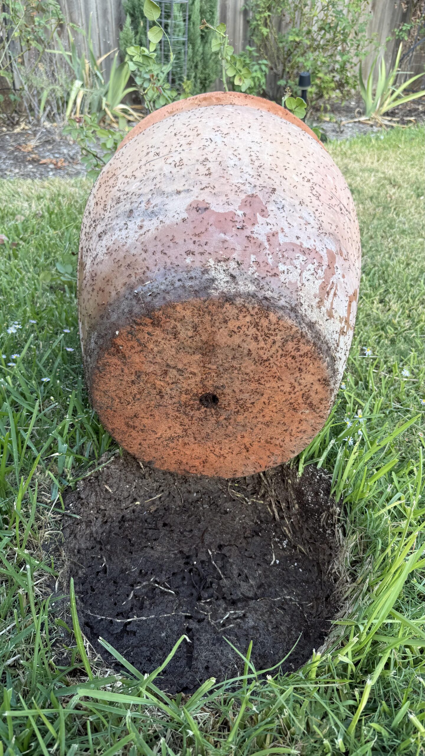 No seriously, I tipped over the pot thinking I could knock out a small hill of fire ants only to find thousands and thousands of them everywhere. It’s been over an hour and they’re still streaming out. They’re in the entirety of the pot and I’ve only been able to safely remove 60% of the soil. I did pour some spinosad. Is it naive of me to hope they’ll just go home?
