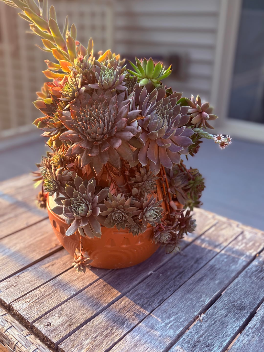 You don’t have to bring that inside for winter. Sempervivum are frost tolerant and can survive snow no problem. They tend to want to stay outside it’s healthier for them and they change color throughout the year, when they get all four seasons.