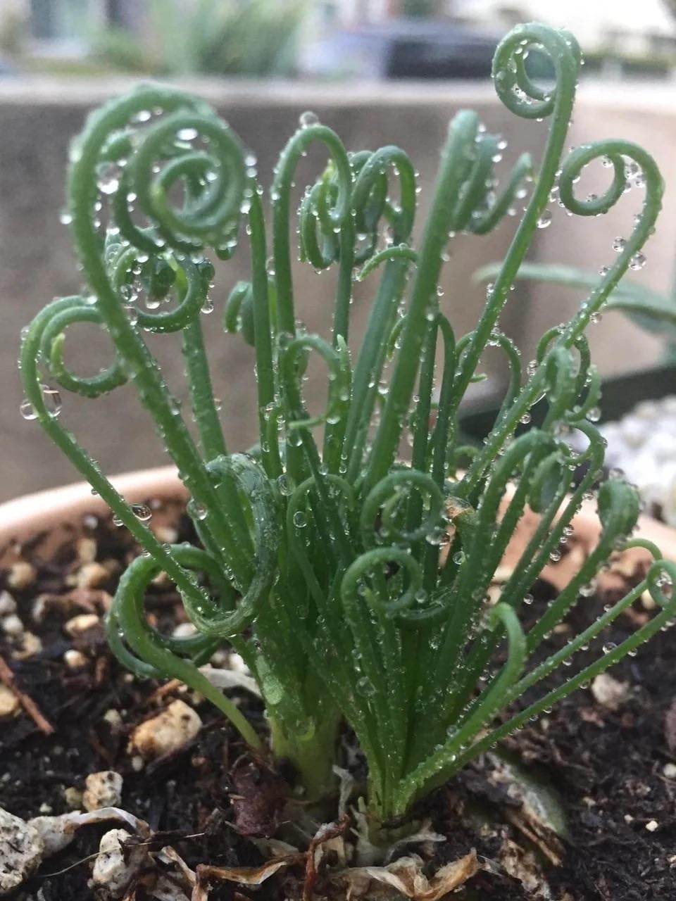 Native to South Africa, it LOVES the sun— the more sun, the curlier it gets! They go dormant in the summer, revive in the fall, and flower in the spring (at least for me that’s the cycle!)