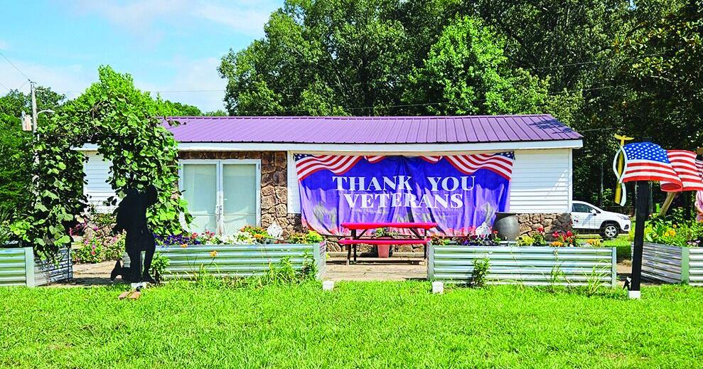 “Plants are labeled. The painted tree, banners and flowers make great backdrops for photos. The swing is a great place to sit and relax,” said Lee Owenby of the club.