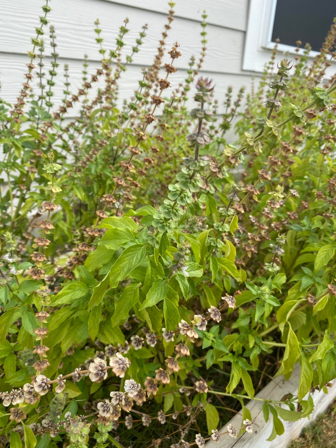 Basil that is flowering and going to seed. When the top parts are brown and dried you can pull the seeds off. Unlimited basil. lol
