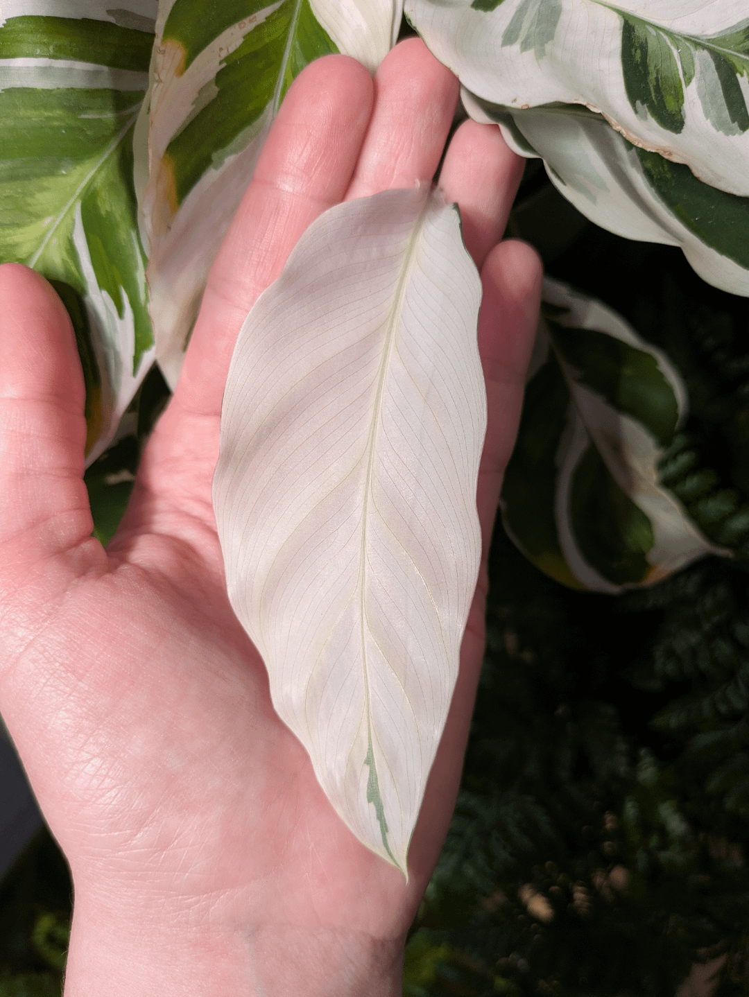 She is TRYING, ok? 😭 by CoraCalls Calatheas 6 Comments StalHamarr 3 weeks ago Your effort is appreciated, small leaf. We clearly see that little bit of green at the tip. ummDerp504 3 weeks ago That’s a very pretty leaf.. I’d still cut it off though. It does not contribute anything to the plant 🙁 CoraCalls 3 weeks ago Me, doing the bare minimum to survive: Much_Chef2704 3 weeks ago That’s a beautiful leaf 🤍 Either_Locksmith_632 3 weeks ago Dont cutt that wil recover with enough light wheels_goround 3 weeks ago They are beautiful, but do not have any chlorophyll, which makes them die.