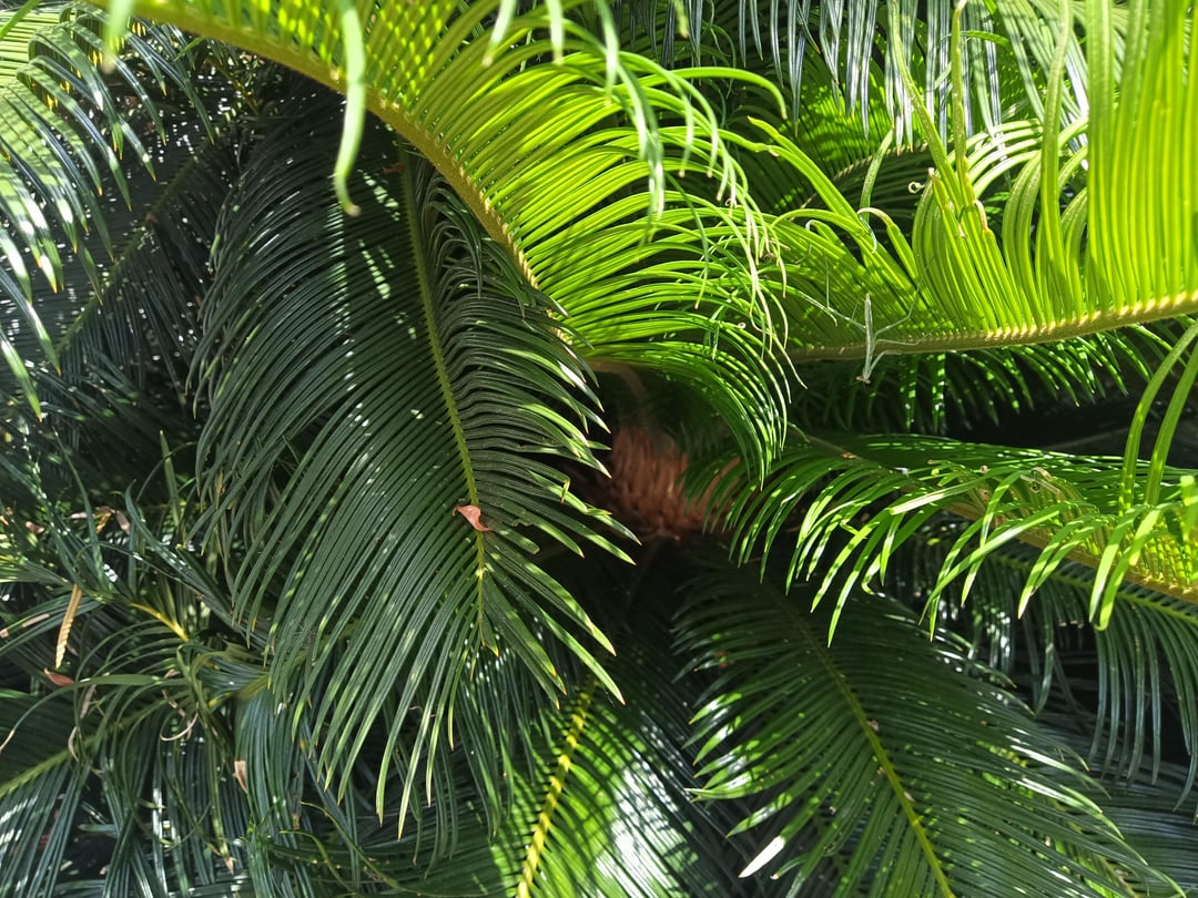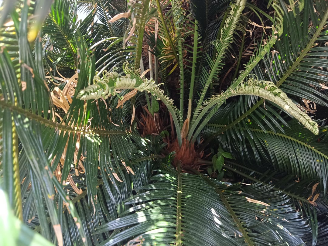 So I've got this beautiful triple head cycad and underneath there are about 7 smaller ones growing up and crowding the whole area.