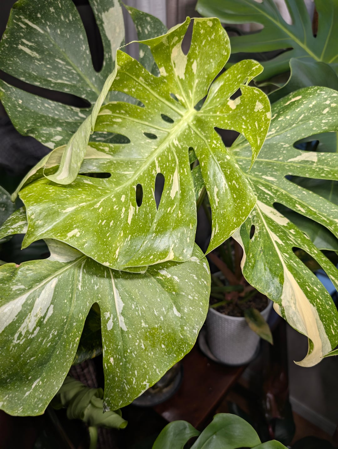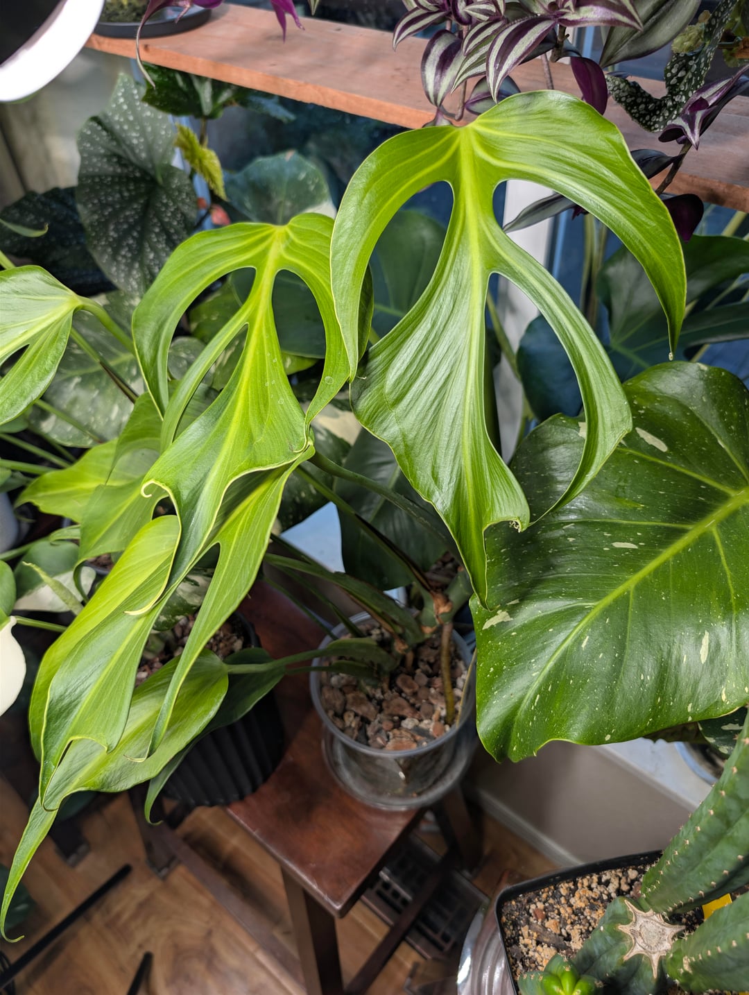 They were purchased back in June as babies. Stuck them under enough lumens to set fire to the Sun and keep shoving nutrients at them.. by Realistic_Ask_4155 monstera 2 Comments Myleg-Fred 2 weeks ago Gorgeous! What nutrients do you give them? PussyWrangler246 2 weeks ago Damn that’s a sexy BMF and the trad above it is fkn gorgeous 🤩