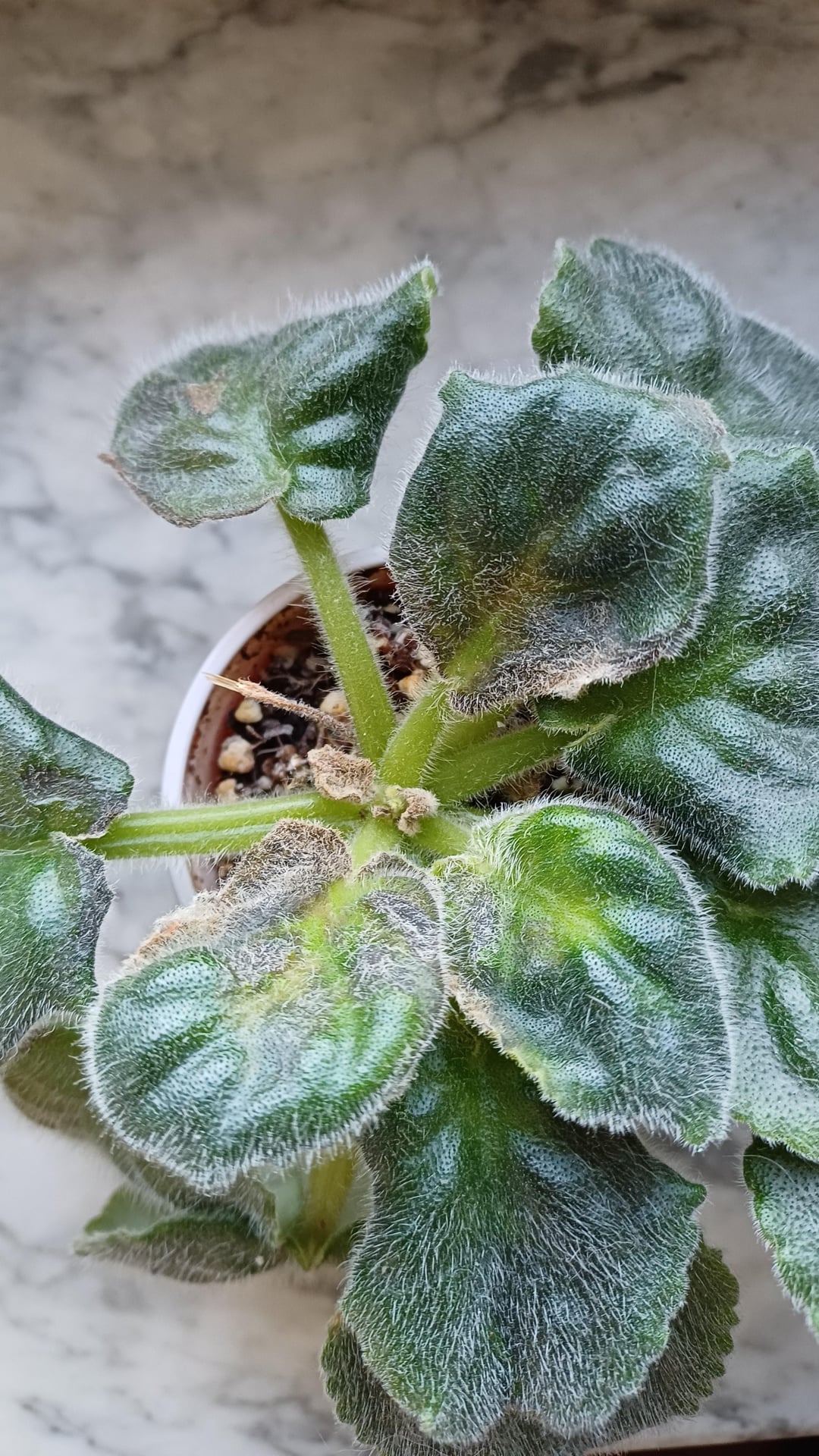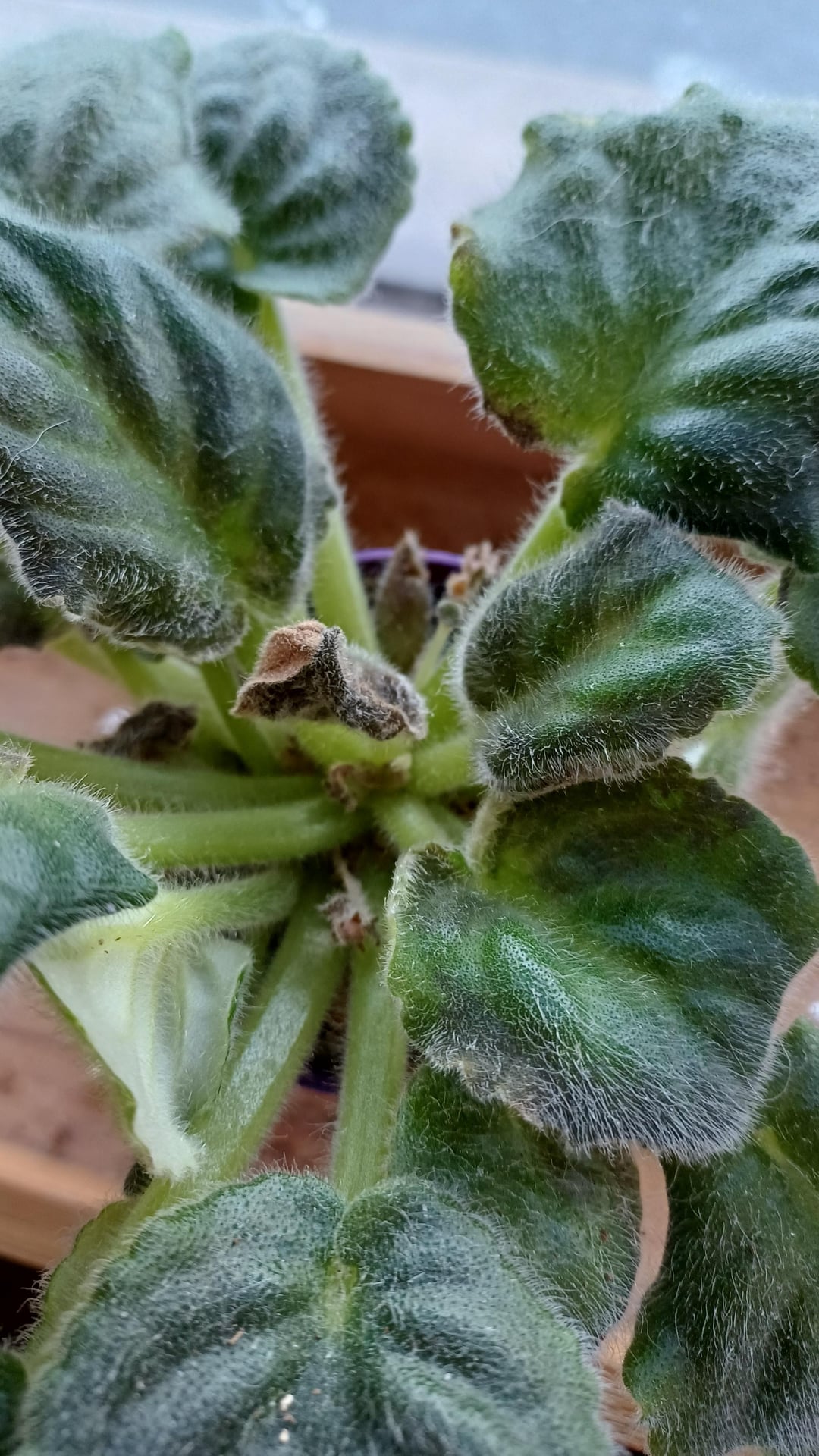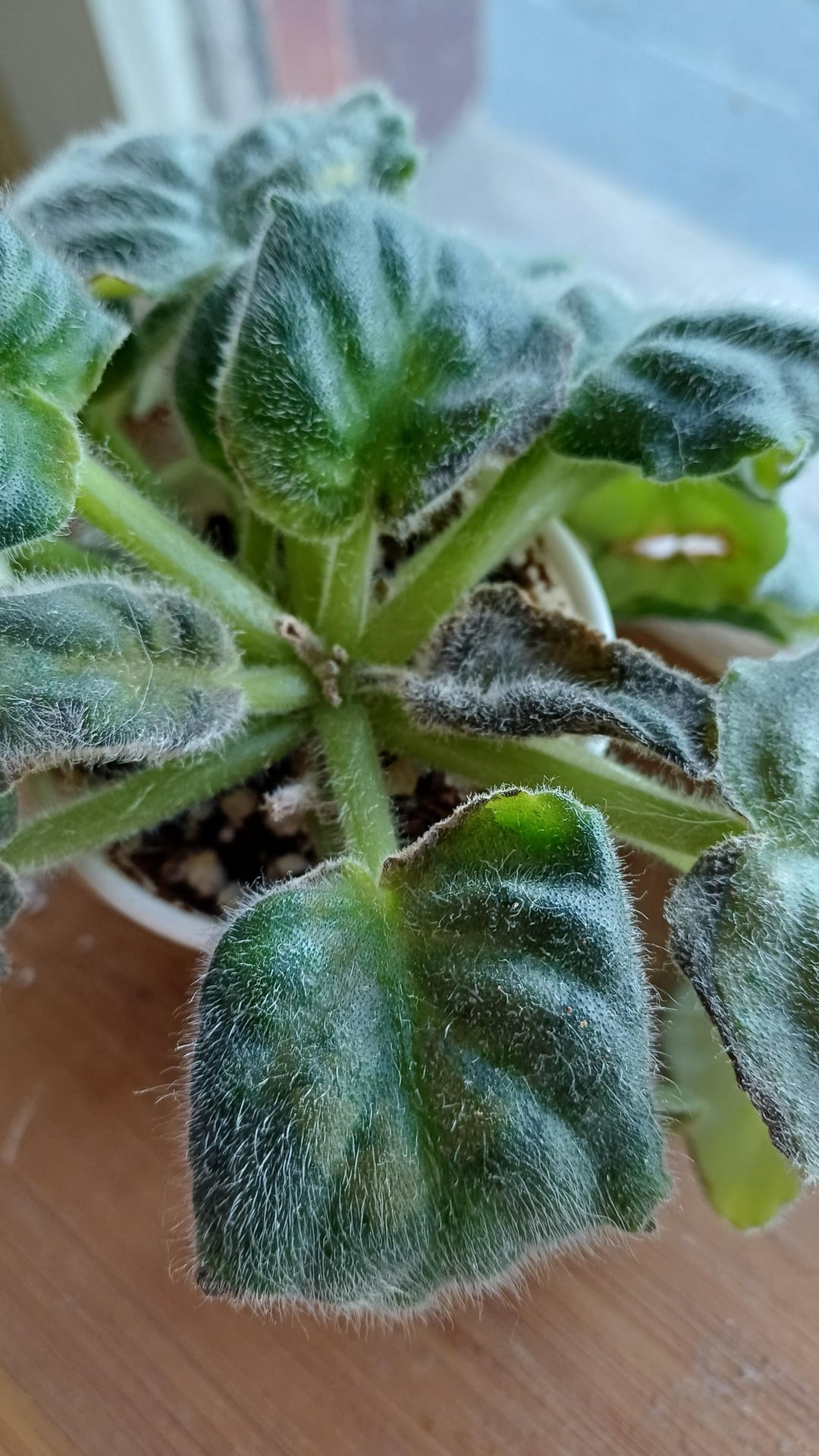 many of my African violets have started turning grey and dying on the new central leaves . They’ve been sitting in front of a bright window for several years, watered from below and occasionally from above with a spout, being careful not to wet the leaves. This is the first time I’ve ever had this problem.