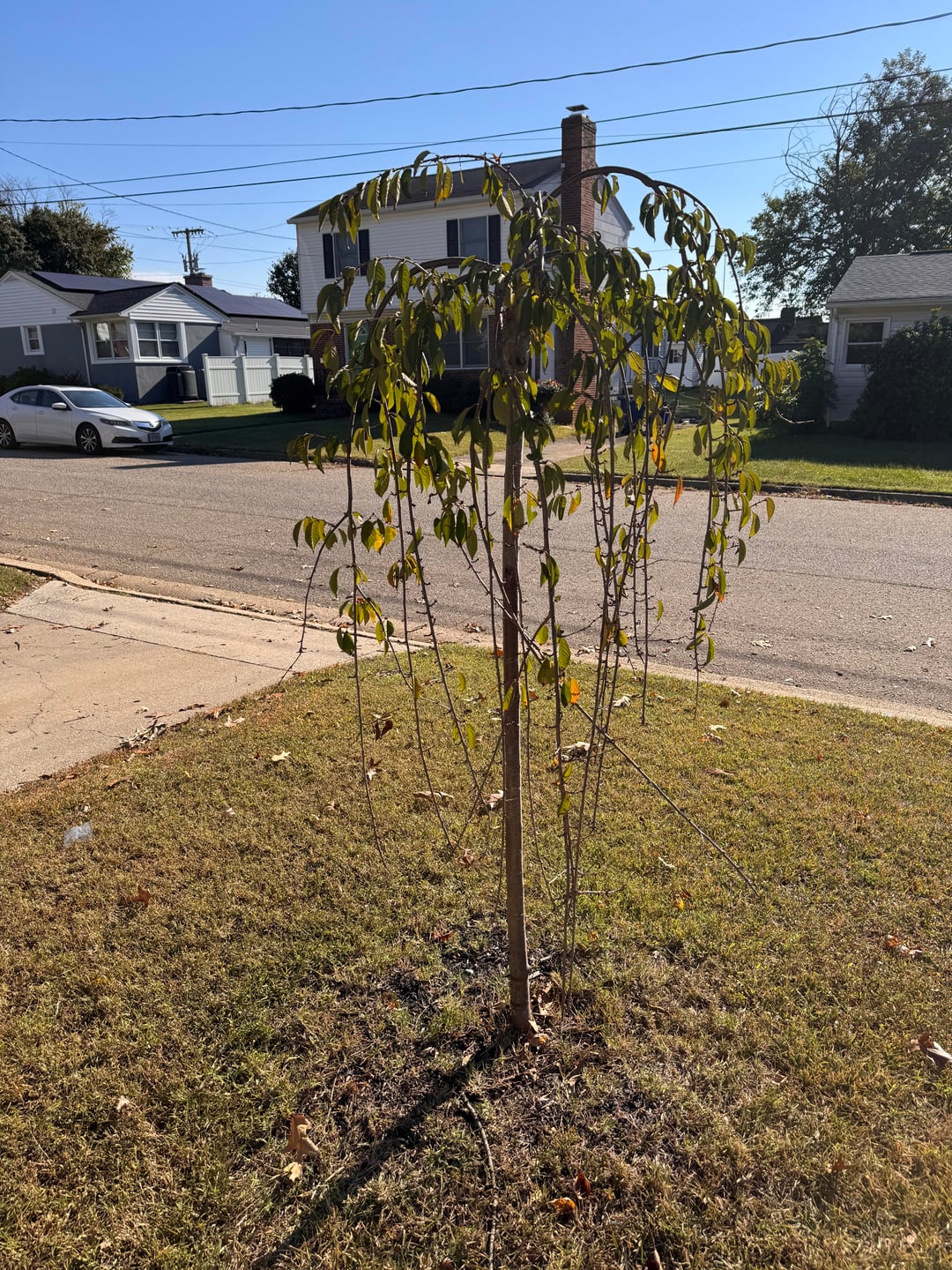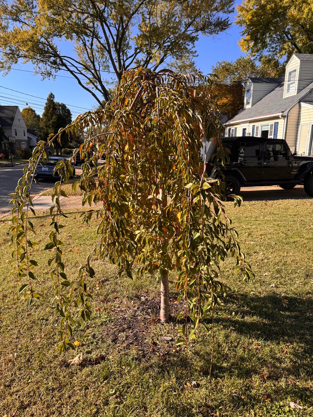 I have two snowblossom cherry trees in the front yard planted about three years ago on the same day. One is very sickly and thin while the other has thrived. They get the same light and water. Both have started to change color and drop leaves for fall, but I've noticed lefty looks worse than usual. Any advice on how to nurse my small frail boy back to health?