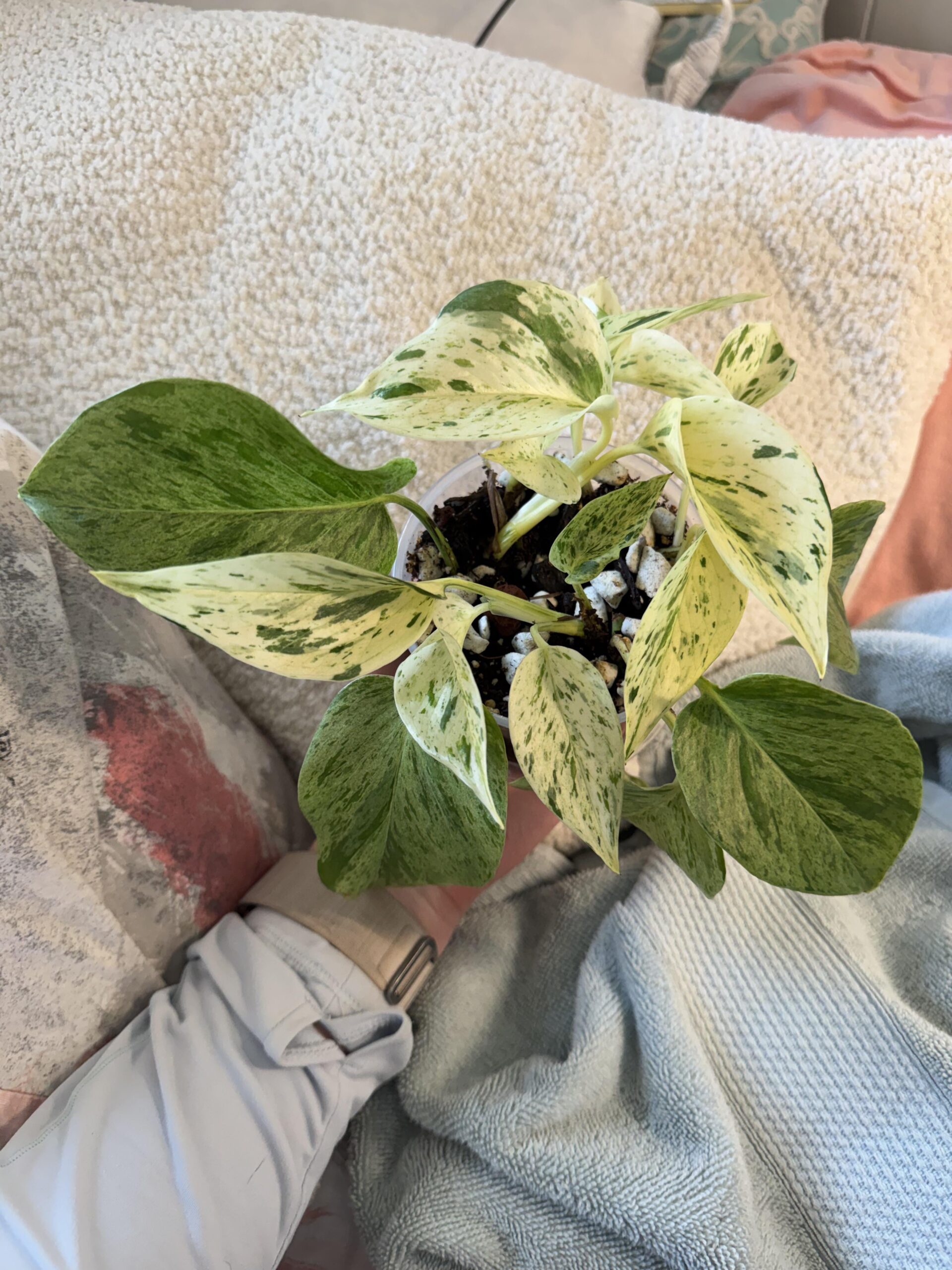 The darker green leaves are the original ones I prop’d but the new growth on this plant and even the original plant have the whitest leaves I’ve seen for a snow queen. Almost all of these leaves have been hardened off for well over 2 months at this point.