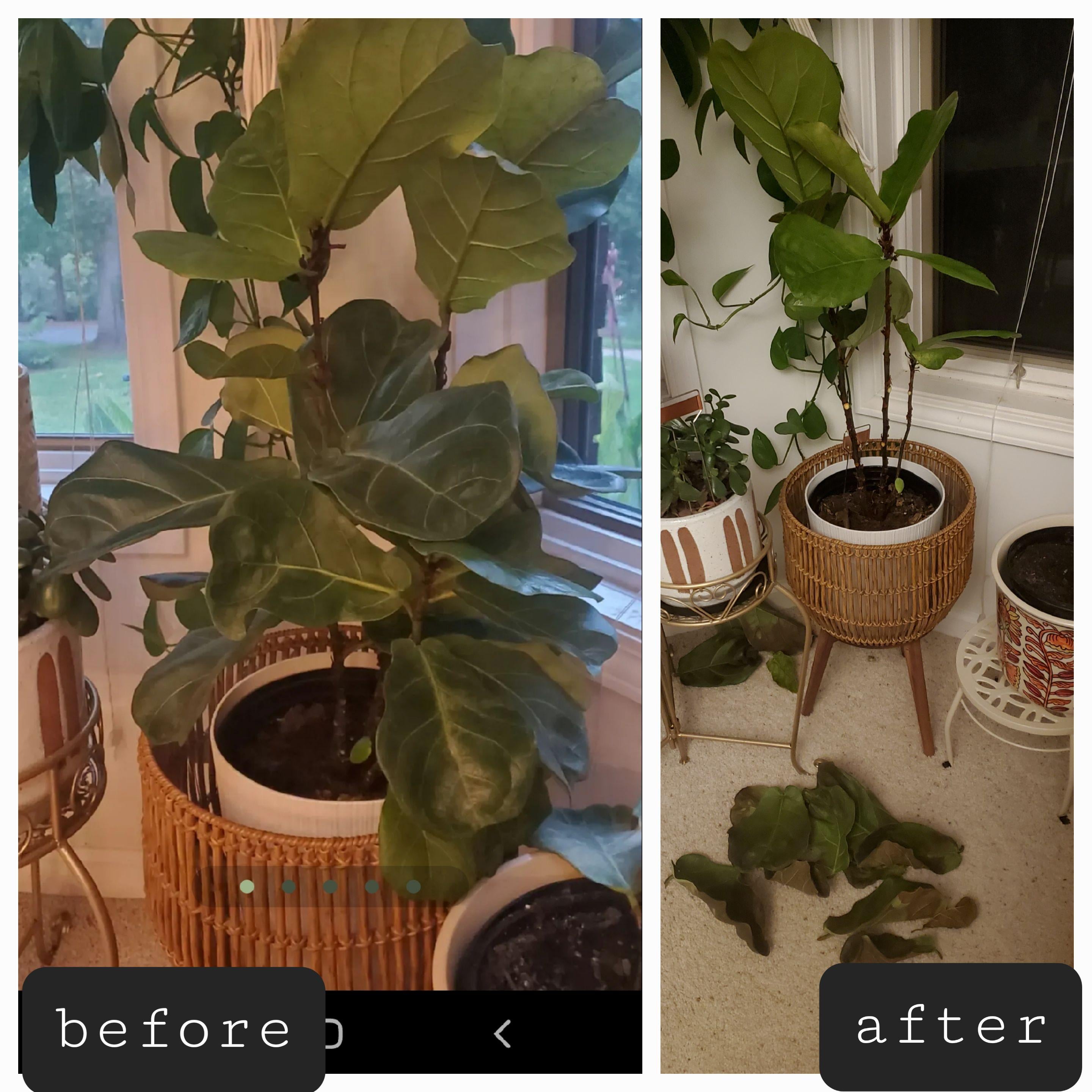 I left town for a week and came back to find my darling had impetuously dropped most of her leaves. She didn't even miss a watering, this seems to have been 100% spite?!