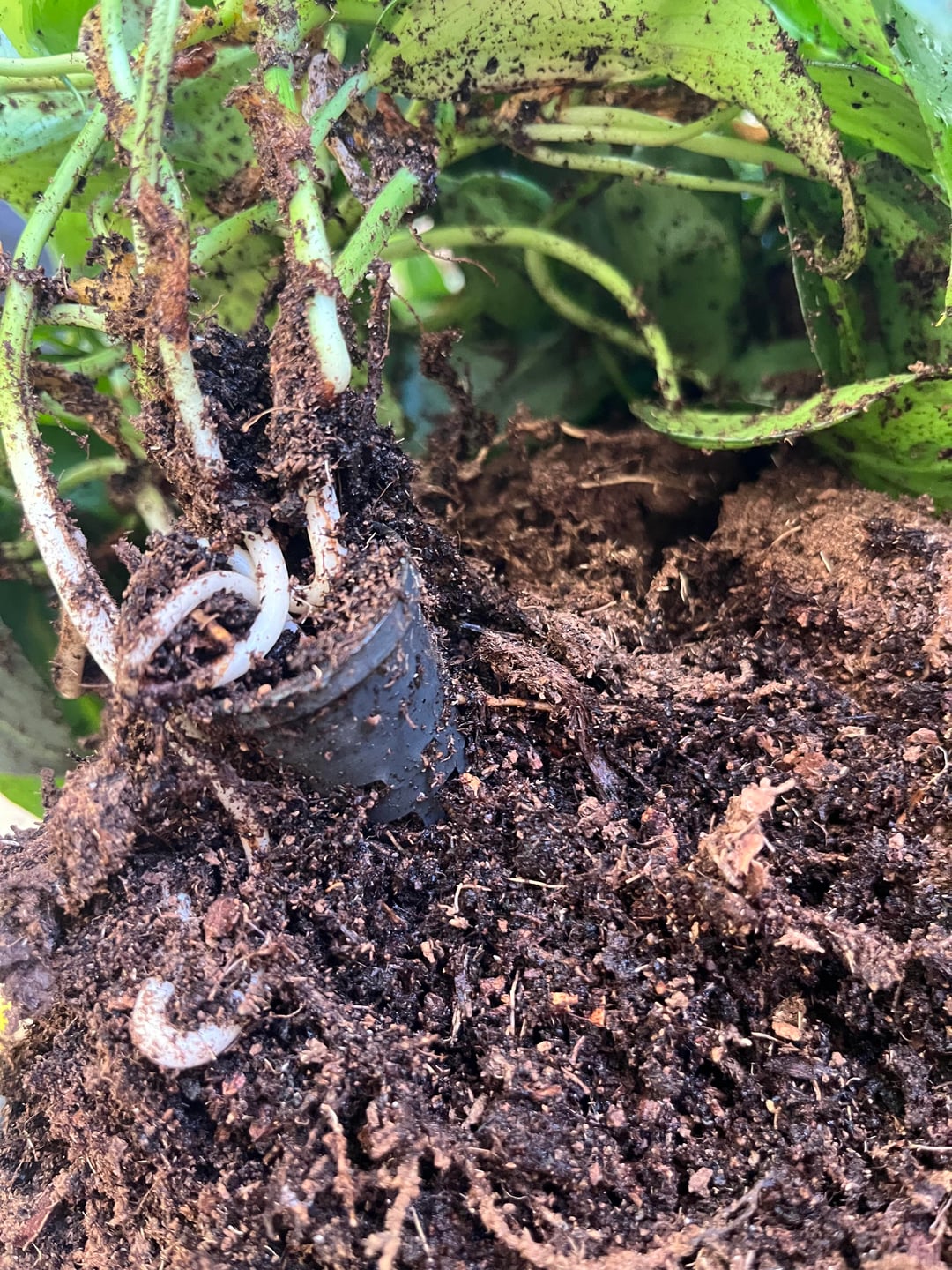 …and herein lies why I am a chronic re-potter 😂 I am afraid my new ‘baby’ has some horrible little plastic ‘trap’ hiding beneath the surface.