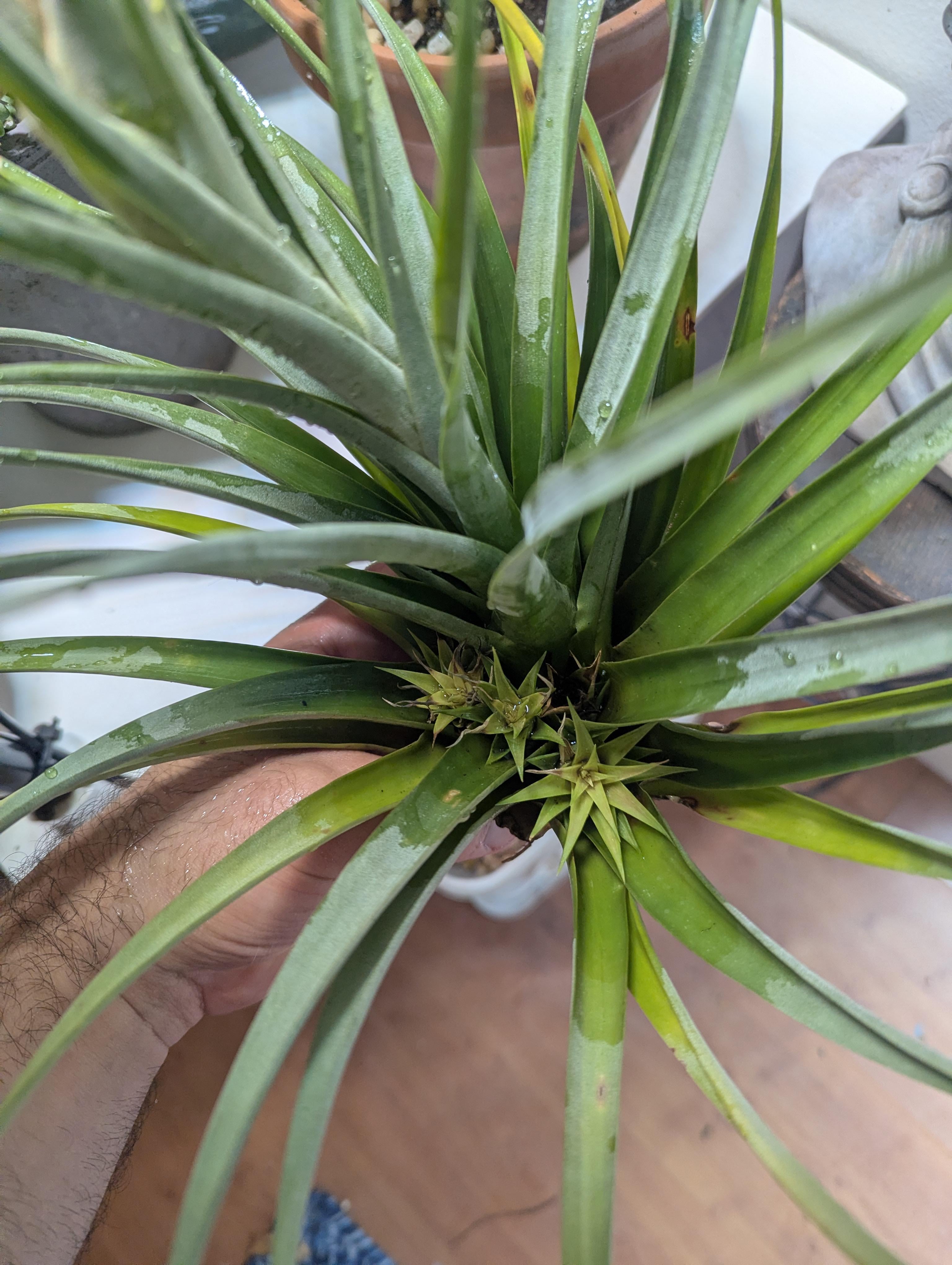 For lack of a better term. This was my favorite air plant last summer. It produced 3 babies. One turned brown/ eventually back at the tips and eventually in the center. The others got browning of the leaf tips. It started making even more babies! They all look sickly but are growing …