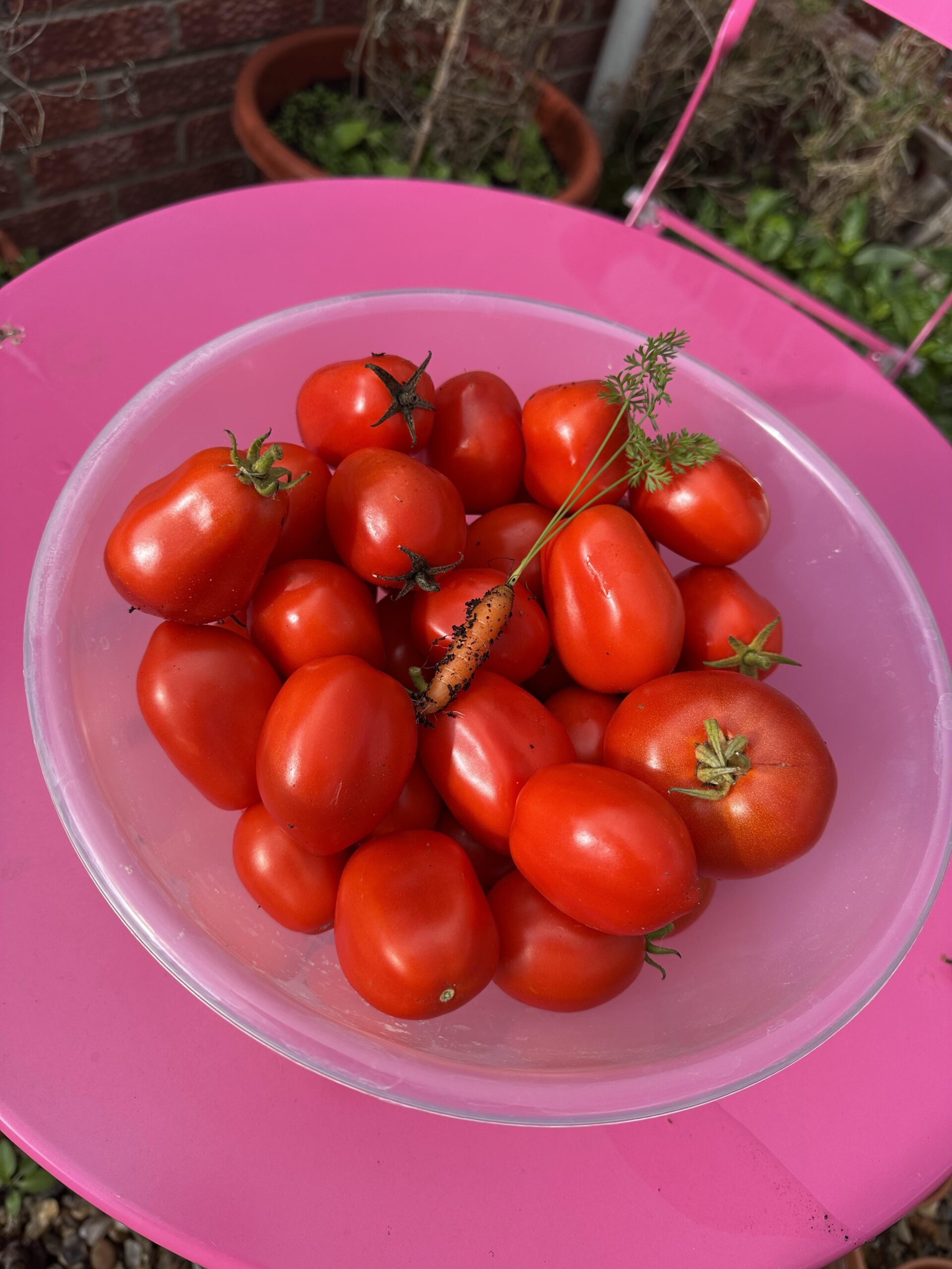 The UK is getting pretty nippy and I can’t believe I’ve still got tomatoes ripening and new ones growing! Is anybody else still harvesting their plants? They still taste great..not as nice as the sunny months but still delicious. by OkGoal8332 tomatoes 4 Comments Distinct-Cap-1110 3 days ago Still harvesting over here!🙋♀️ But I am uprooting the plants next weekend to keep my soil disease free. UseItThenBinIt 3 days ago Nice carrot ceciem2100 3 days ago Oh I just love the carrot! Well done! Redskinrey 3 days ago I’m just here for the tiny carrot https://preview.redd.it/c6oz4ys7eaxf1.jpeg?width=1080&format=pjpg&auto=webp&s=a3349fdb62517e17548c02ce455b1a5340d0b025