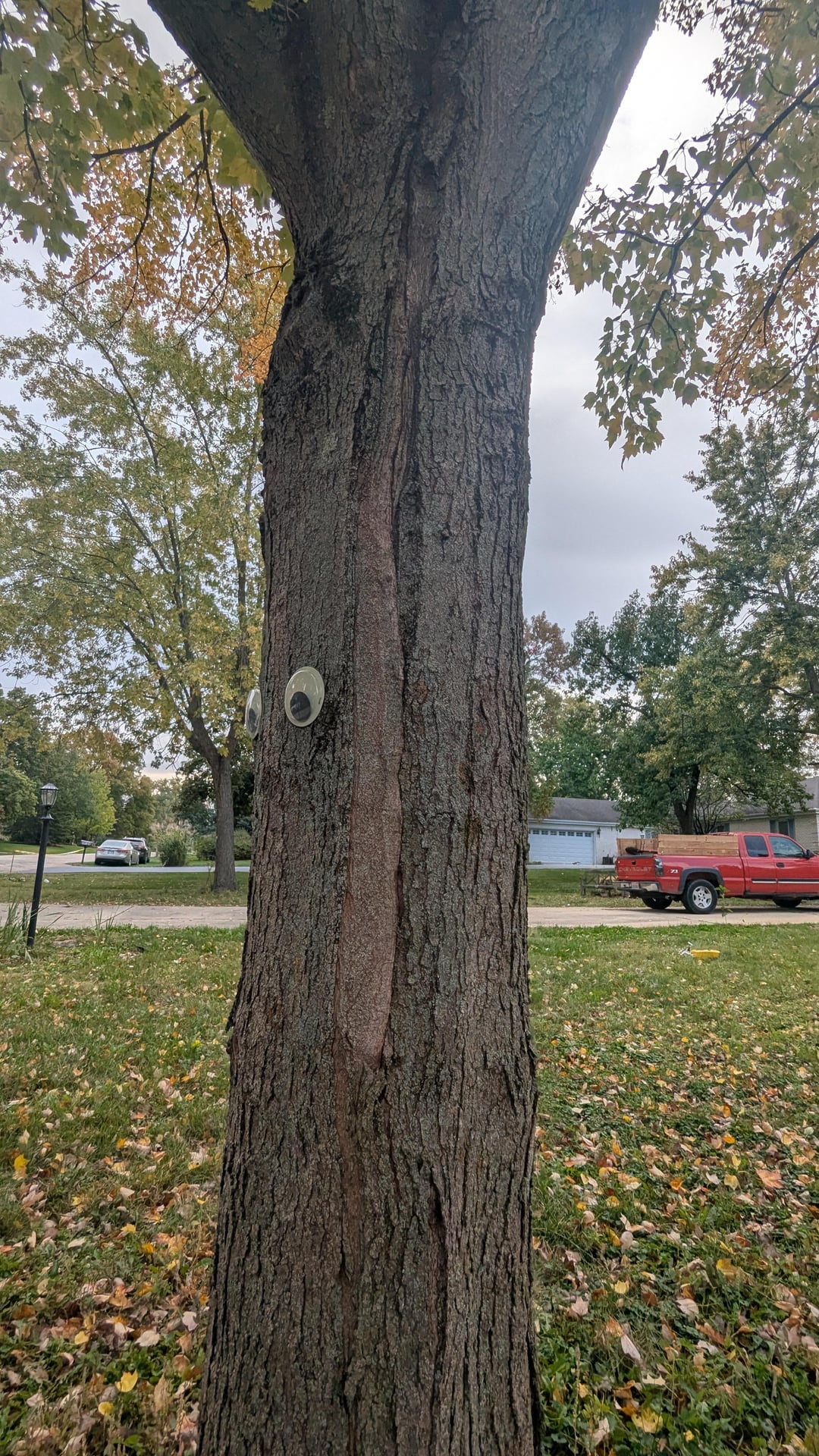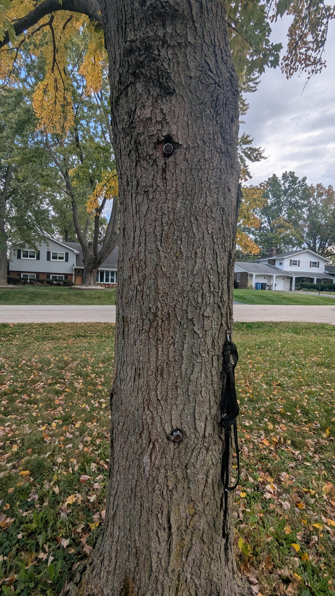 A lot of times we get folks in the sub asking if their tree is done for due to a crack. This is a red maple that my arborist partner was able to bolt back together after a microburst split it down the middle 8yrs ago. She’s beautiful most would have cut it down. Healed wonderfully