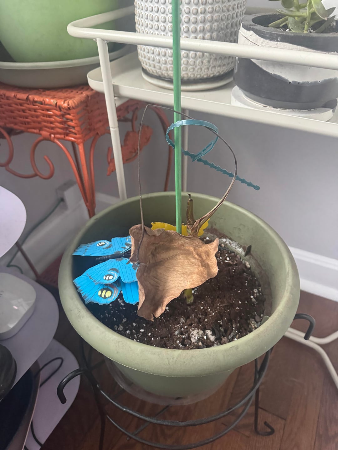 We all have a plant or two who throw a hissy fit for no reason! I have two avocado plants, both cared for in the same way, get the same water, soil ect, one is happily growing, the other has browning leaves and is leggy af.