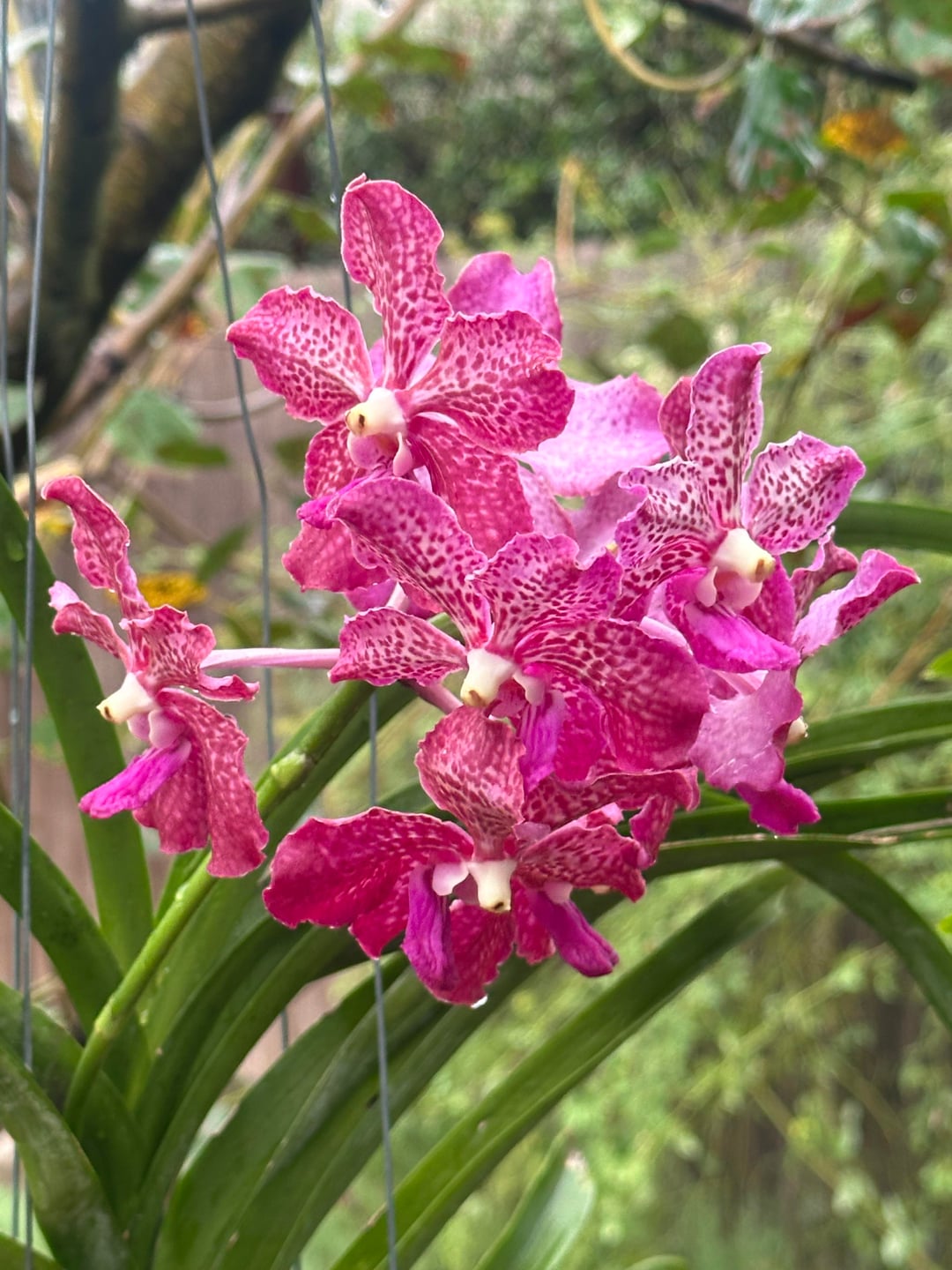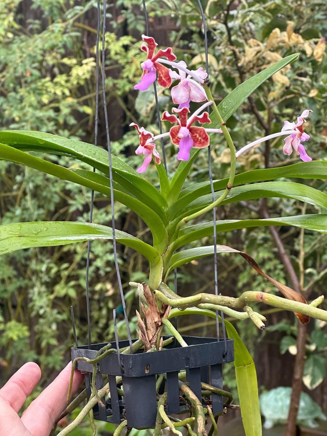 V. merrillii x Dr Anek and v. limbata. They usually live on my porch but it’s raining today so they’re getting a shower in my backyard (Houston, TX). Little Vanda smells amazing, still waiting for the big one to do something 🙄 by DogsAndCatsOhMyy Orchids 2 Comments heimermestert 2 days ago Beautiful islandgirl3773 2 days ago Gorgeous!