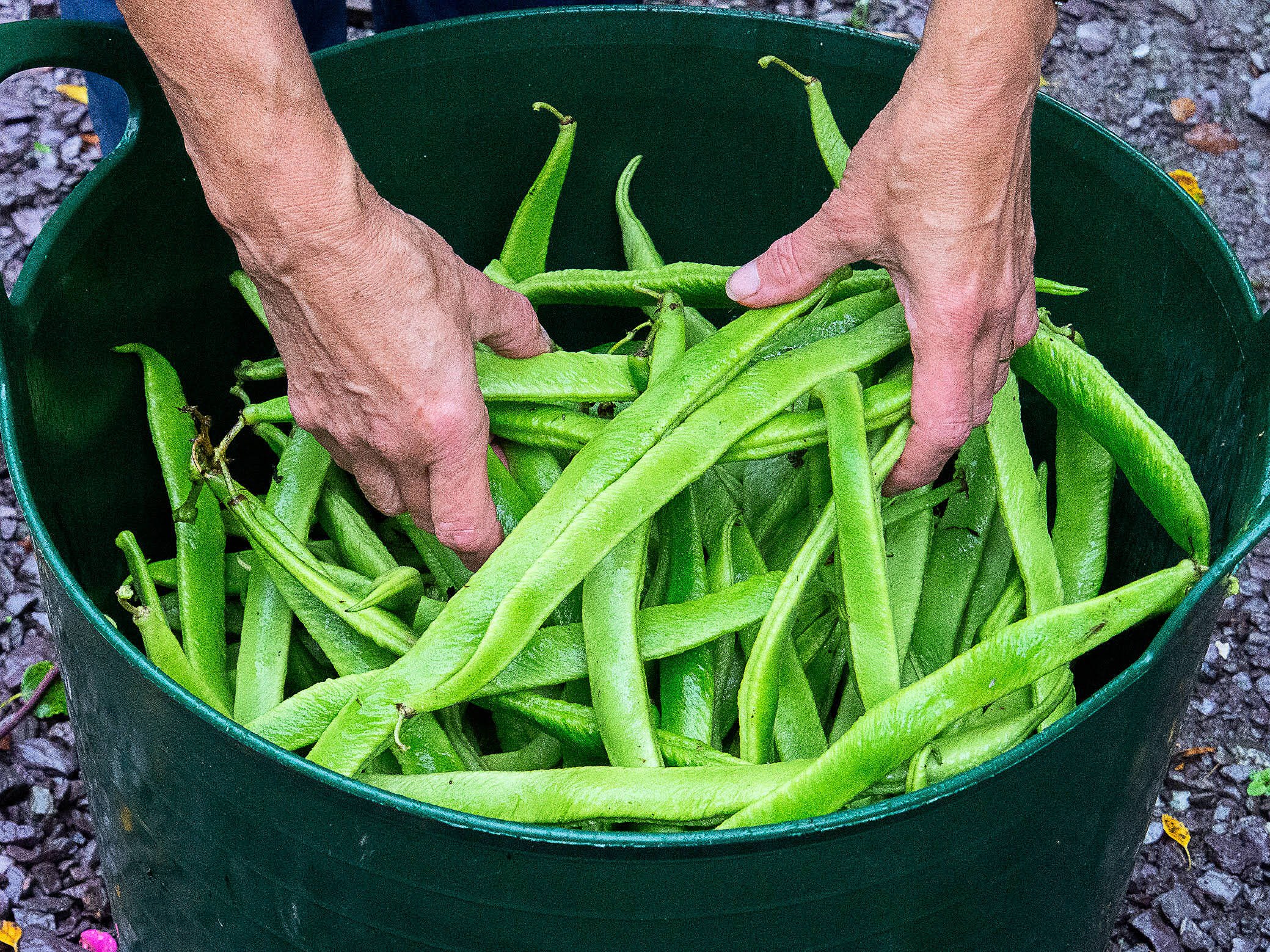Pick any last beans before the pods turn too tough and stringy to eat. If you miss that moment, then it’s worth letting beans fatten up before picking, these can be shelled out of the pods. Shelled beans can be dried and kept in jars for use in soups and stews. They can also be frozen and added to dishes as you want them.
