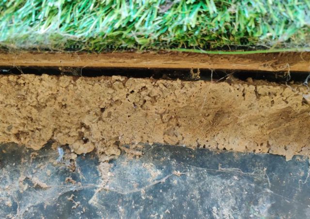 “We bought our house with this turf, which we want to change to a real lawn,” the original poster continued. “Underneath the turf is roughly 8cm of sand, [bordered] in by wood, which could likely take 3cm of topsoil before spilling over. Under the sand appears to be a layer of permeable/porous concrete … Can I add 3cm of topsoil (area is 6m x 5m) and then rake over the top layer to mix with the sand, before seeding?”
