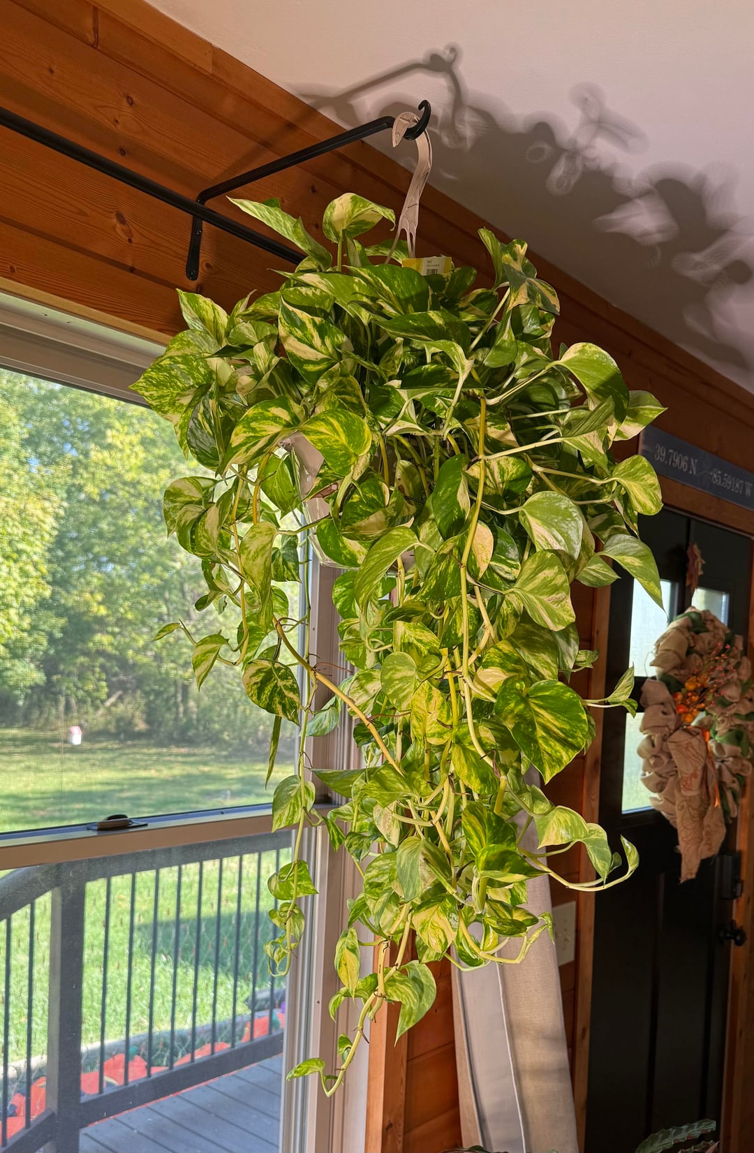 This sounds strange because golden pothos are the norm right now, but I’m pretty sure that’s the variety I want to buy next because I don’t have one. I have two jades and a marbled queen. They all live in the same area and I need one more to fill up the gap on this particular pothos shelf.