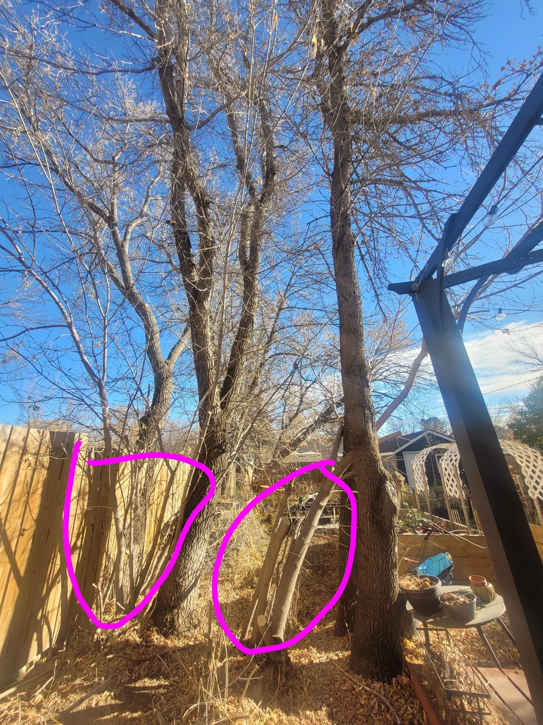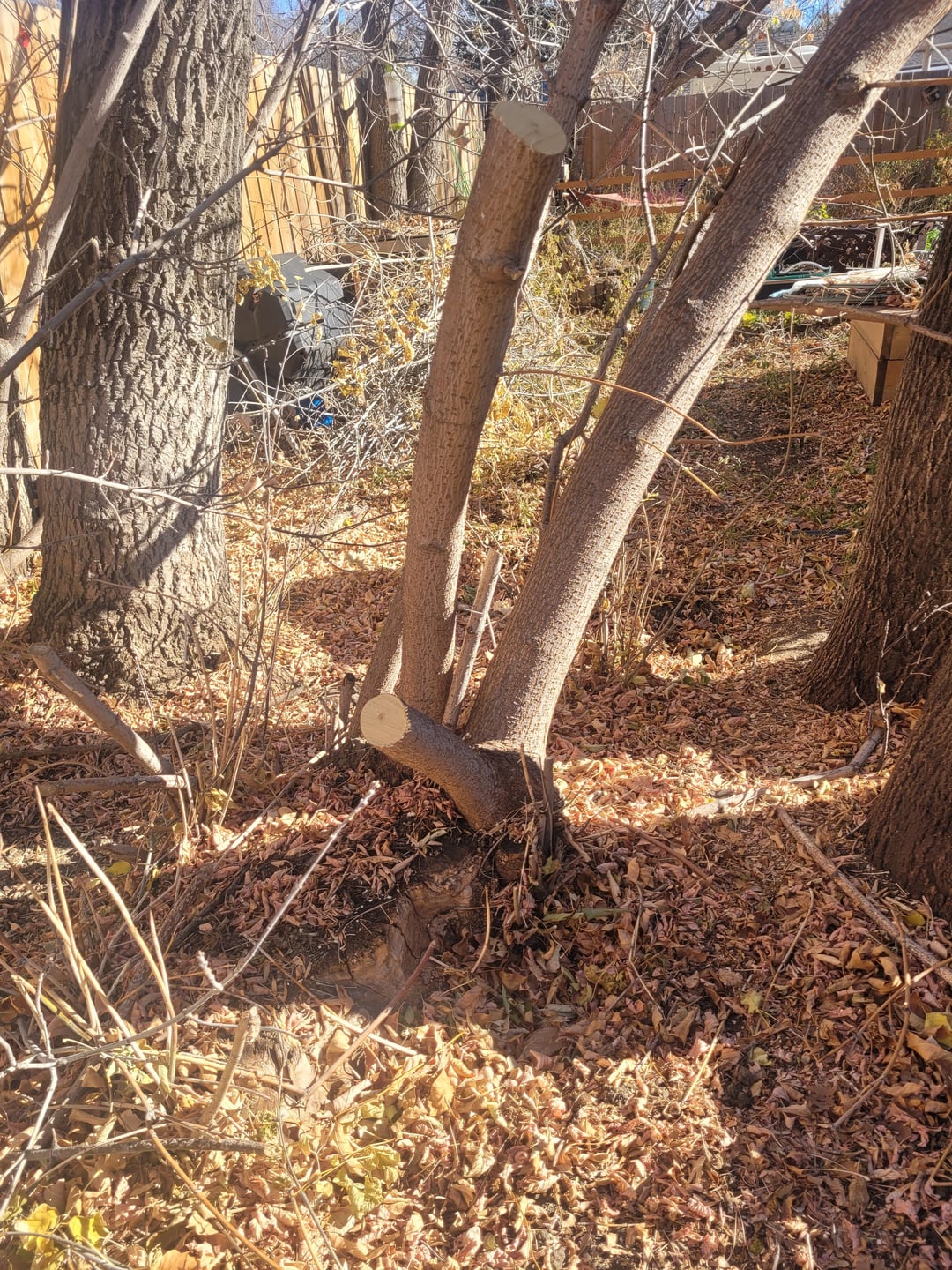They've been growing from stumps that the previous owner left ~8 years ago. A couple weekends ago I finally started cutting back some of the taller suckers as they were growing at a 45deg angle towards the house and over the deck. Should I cut them all the way back to save the big/old trees in this cluster? What's the best path for the health/longevity of these trees?
