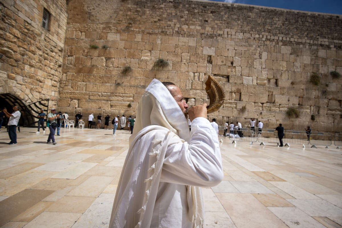 A man blows the Shofar ahead of Rosh Hashana at the Western Wall (Oren Ben Hakoon) Oren Ben Hakoon