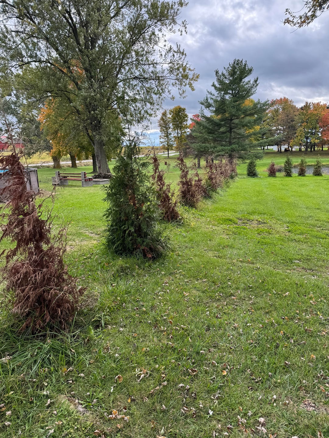 And now here we are on 10/26 still with no resolution and there’s been freeze warnings the last 2 nights. We’re at a loss. Since the second round of fertilization in August, more of the trees are starting to look bad. They have yellow and browning inside close to the trunks. We’ve started wondering if the trees should not have had those treatments.